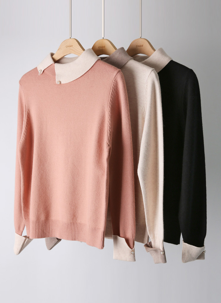 멜라 언발란스 카라 배색 울 블렌딩 반하이넥 니트