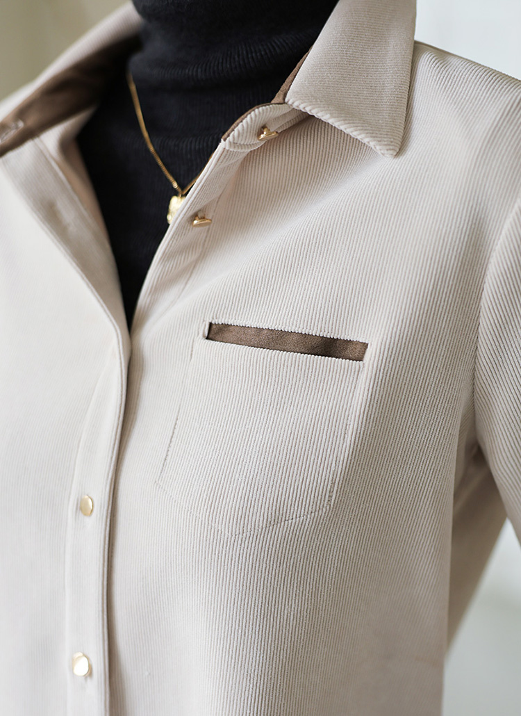 [LouisAngel] 쫀쫀 고스판 스웨이드 배색 포인트 코듀로이 셔츠 블라우스