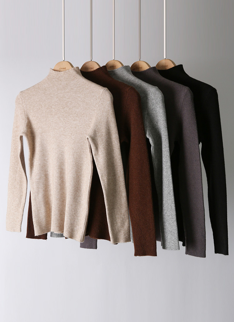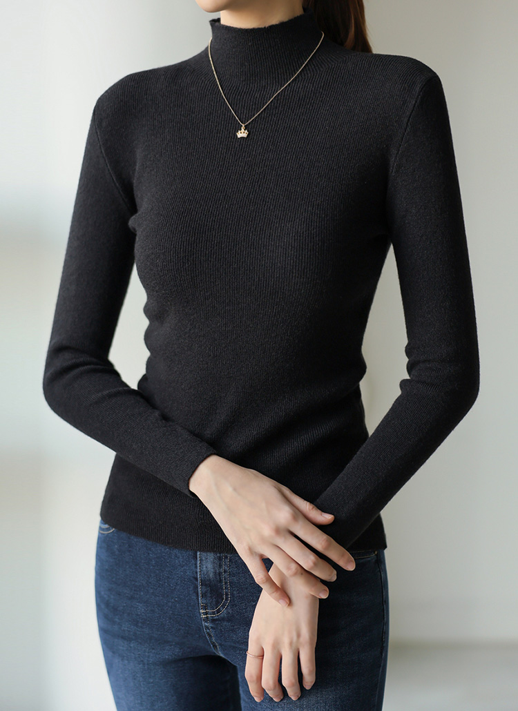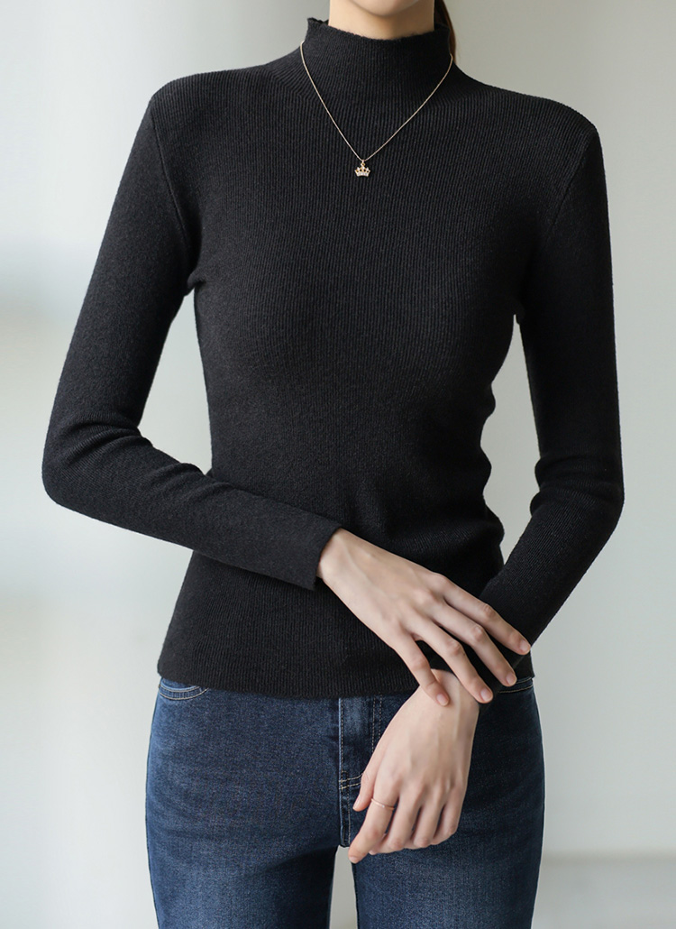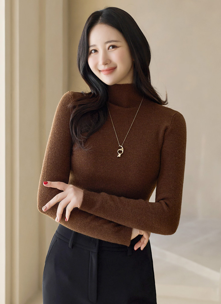 반폴라넥이 넥라인을 부드럽게 감싸주어