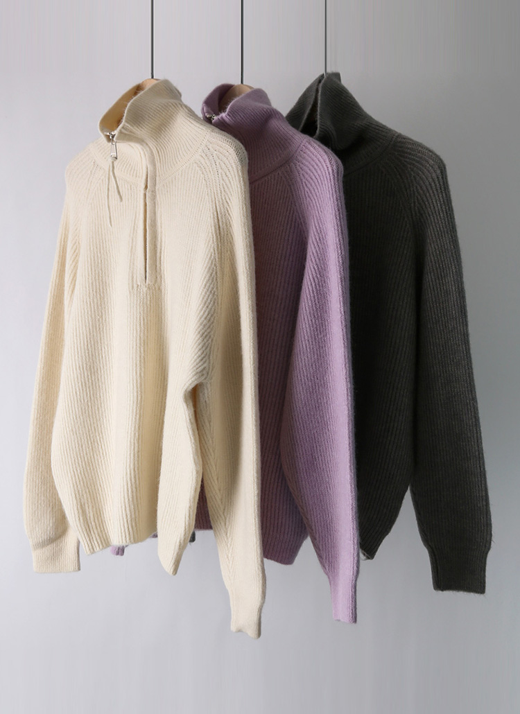 [Theonme] 에리즈 반집업 카라 골지 니트