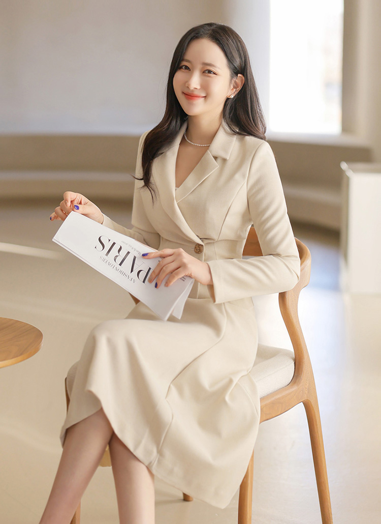 허리라인이 슬림하게 잡혀있고 A라인 디자인으로 나와 여성스러운 실루엣을 연출하며