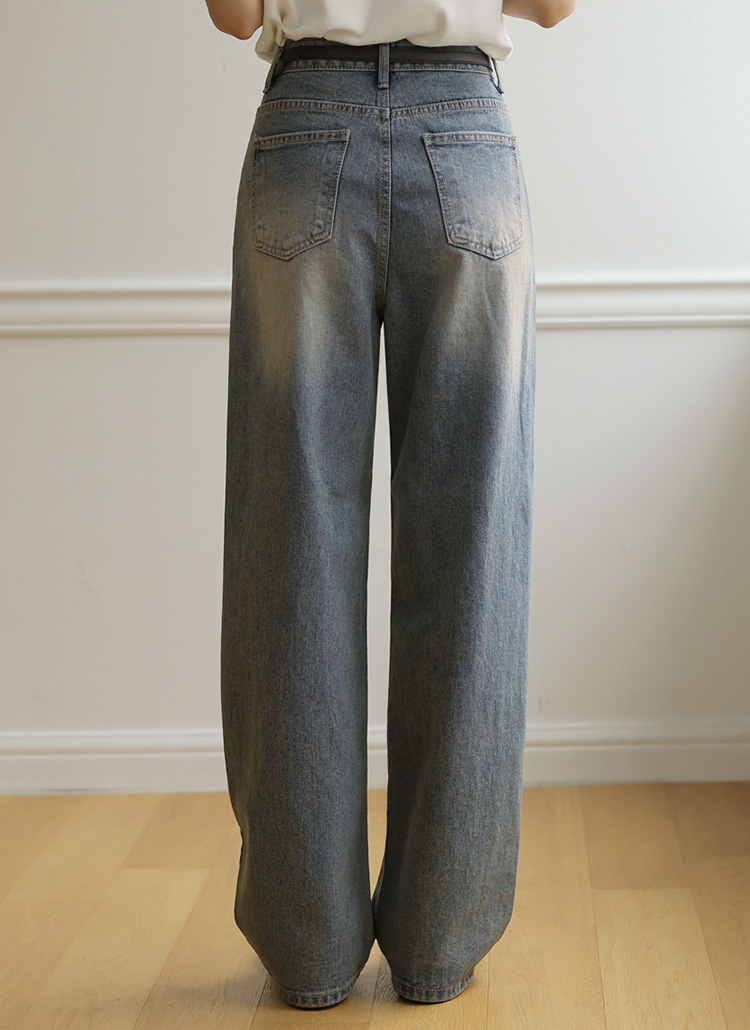 [Theonme] 빈티지 하이라이트 워싱 세미와이드 데님 팬츠
