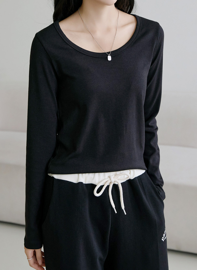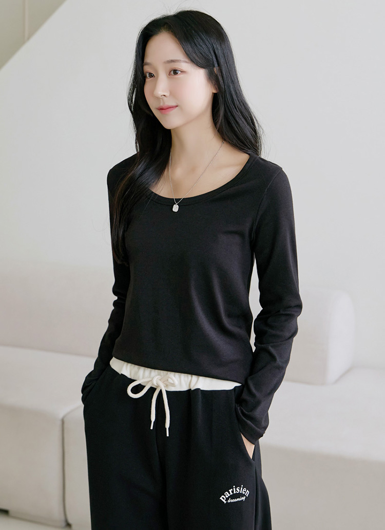 넓은 유넥으로 쇄골라인이 드러나며