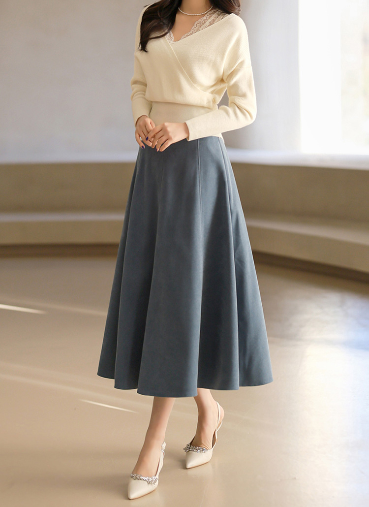 부드러운 실루엣 절개 A라인 롱 플레어 스커트