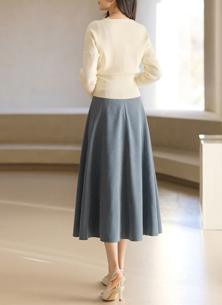 절개 디테일의 A라인 롱 플레어 스커트에요 :)