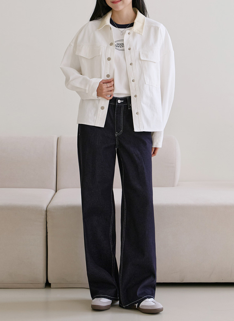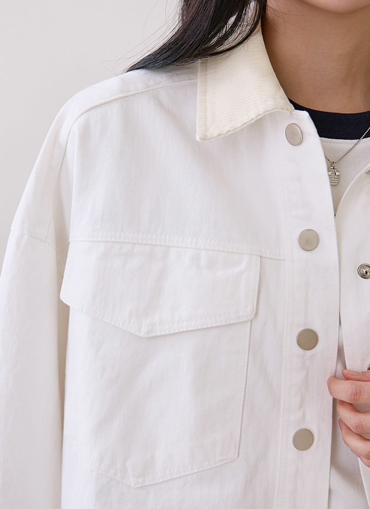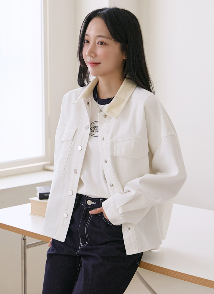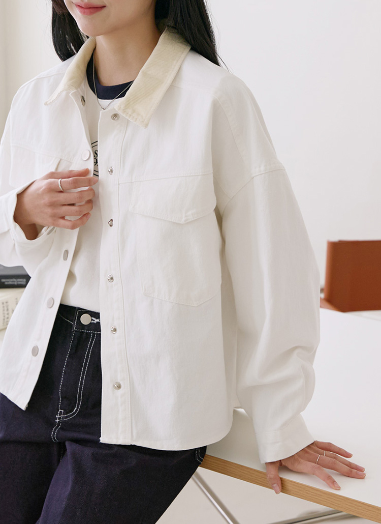 코듀로이 카라가 트렌디한 포인트를 더해주어요