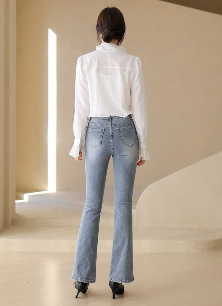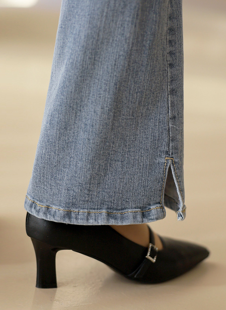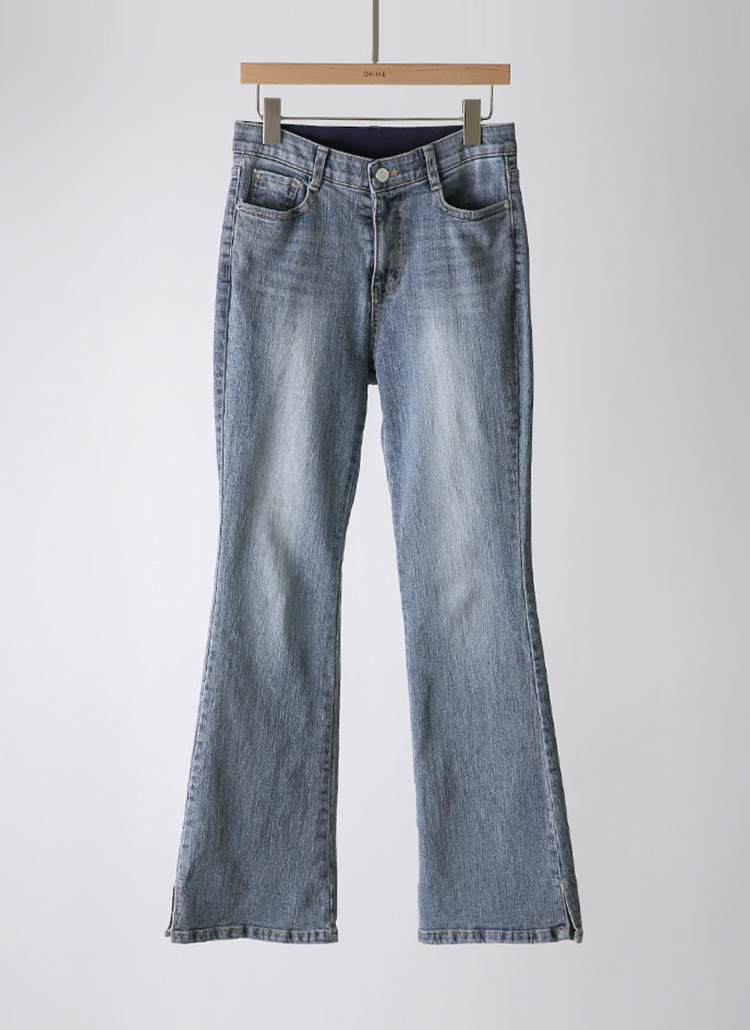 블루쿨 워싱 히든밴딩 밑단 트임 슬림 부츠컷 데님 팬츠
