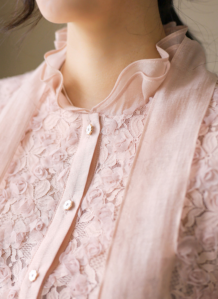 [LouisAngel] 헨느 스카프SET 쟈가드 플라워 레이스 쉬폰 러플넥 블라우스