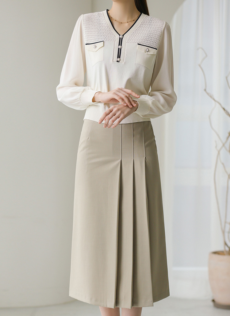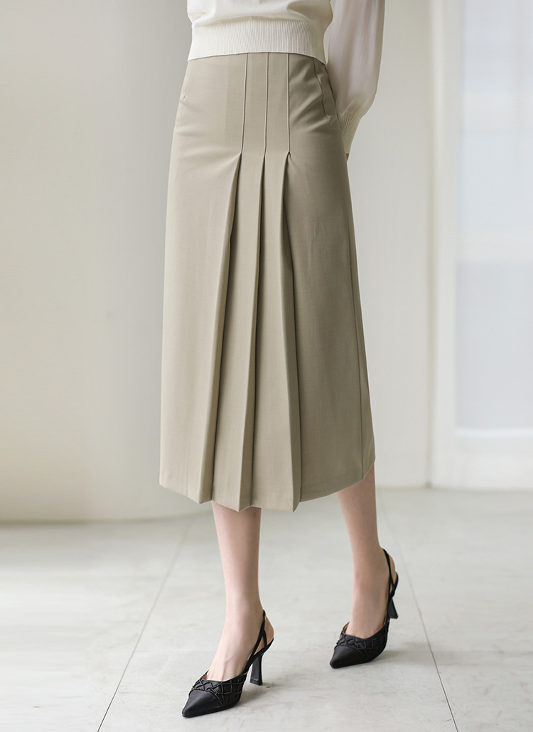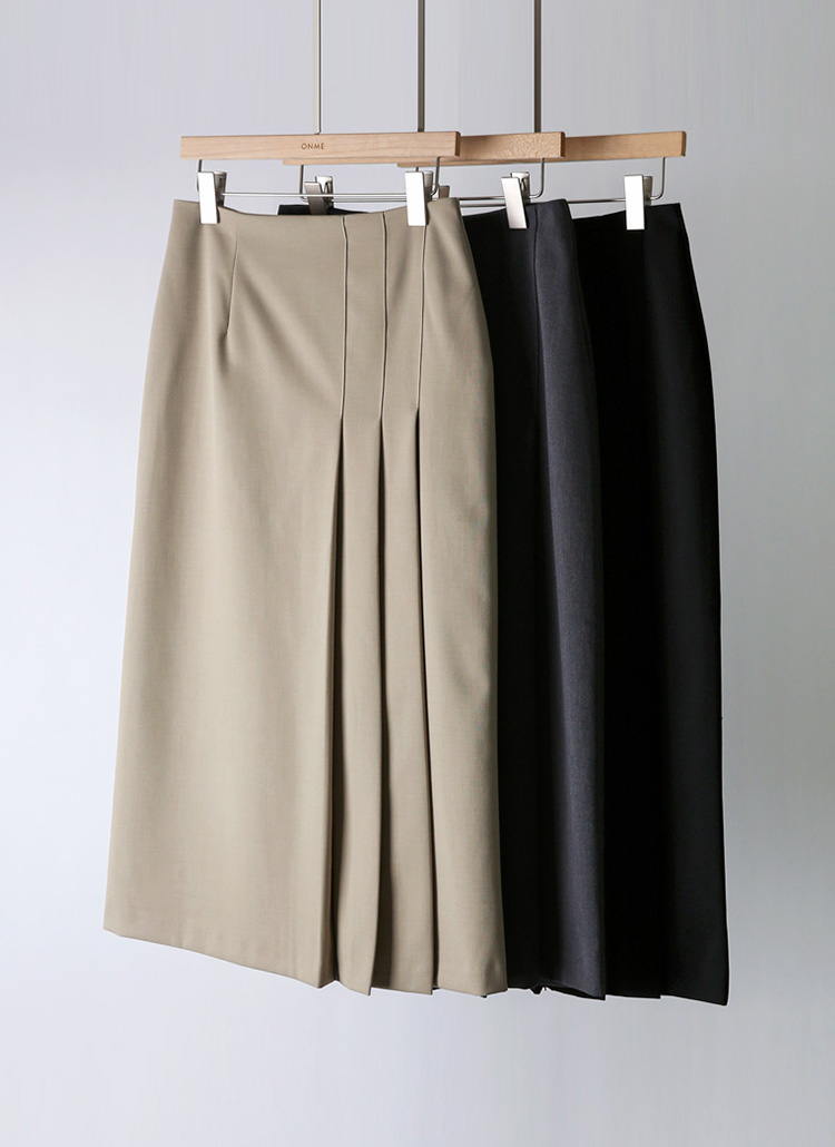 르노미 언발란스 사이드 플리츠 H라인 펜슬 스커트