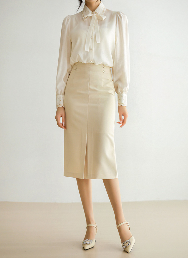 로렌스 사이드 더블 버튼 절개 트임 H라인 미디 펜슬 스커트