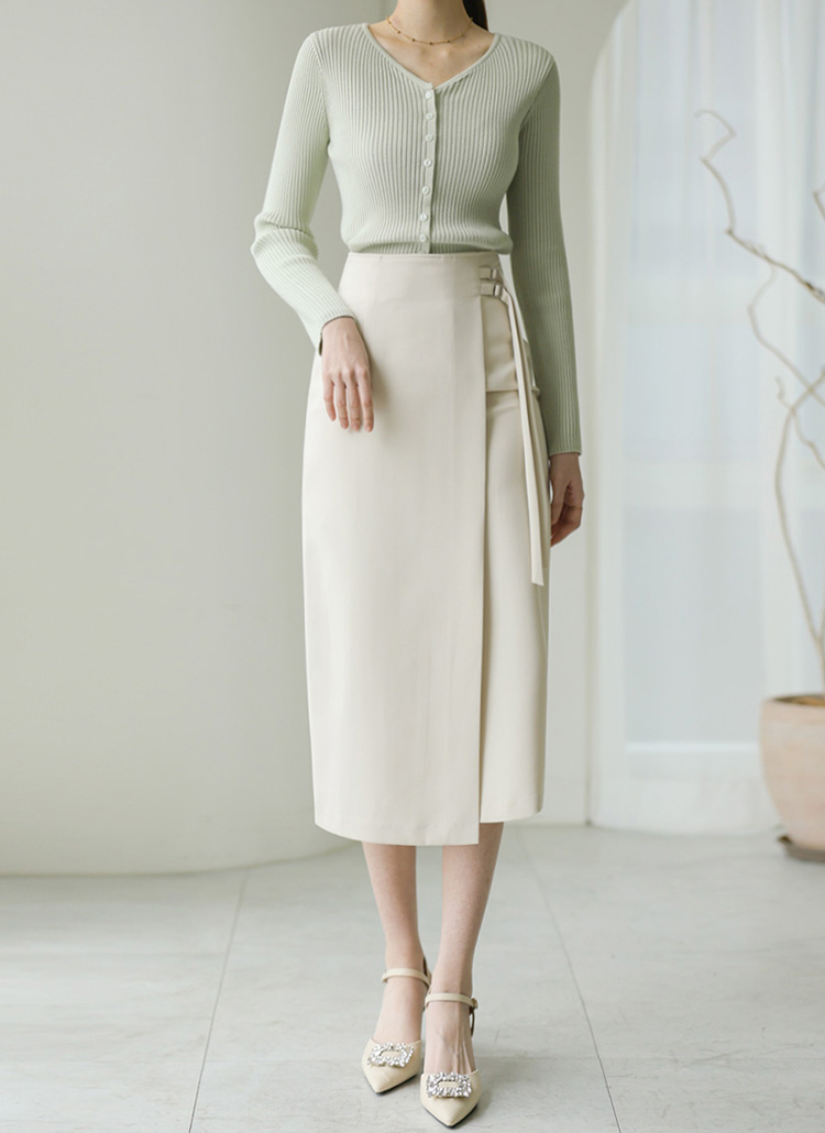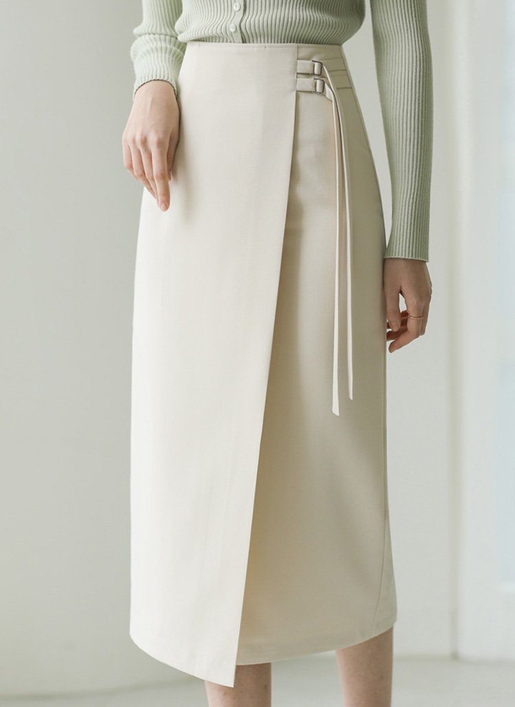 프리스 더블 벨티드 랩 디자인 롱 스커트