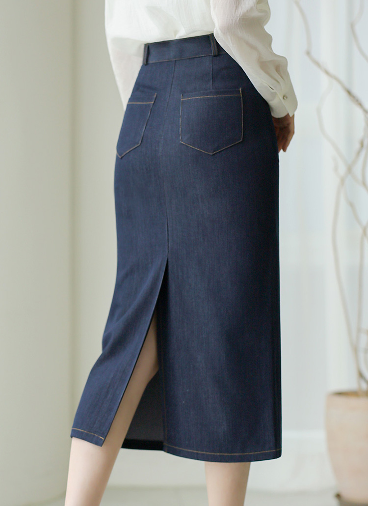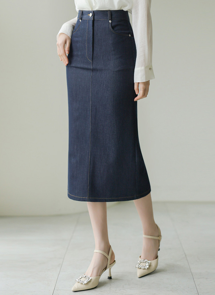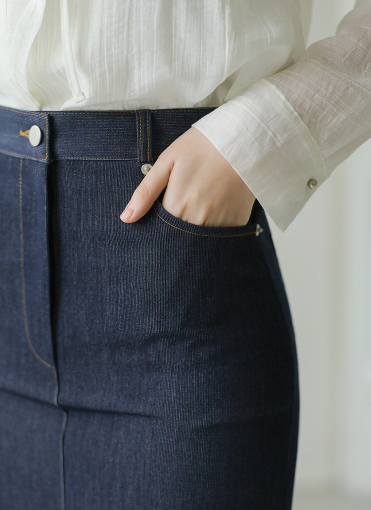 깔끔하고 캐주얼한 무드의 데님 H라인 롱 스커트!