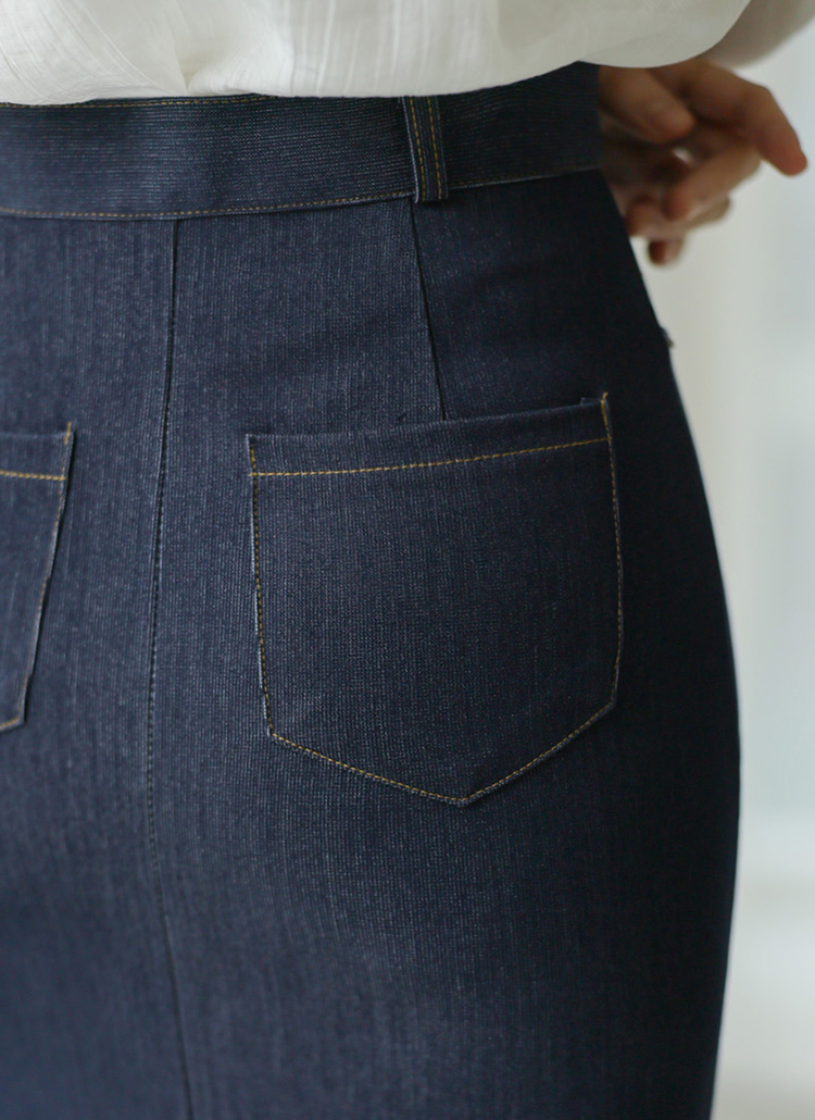 베리포 소프트 텐션 스티치 데님 H라인 롱 스커트