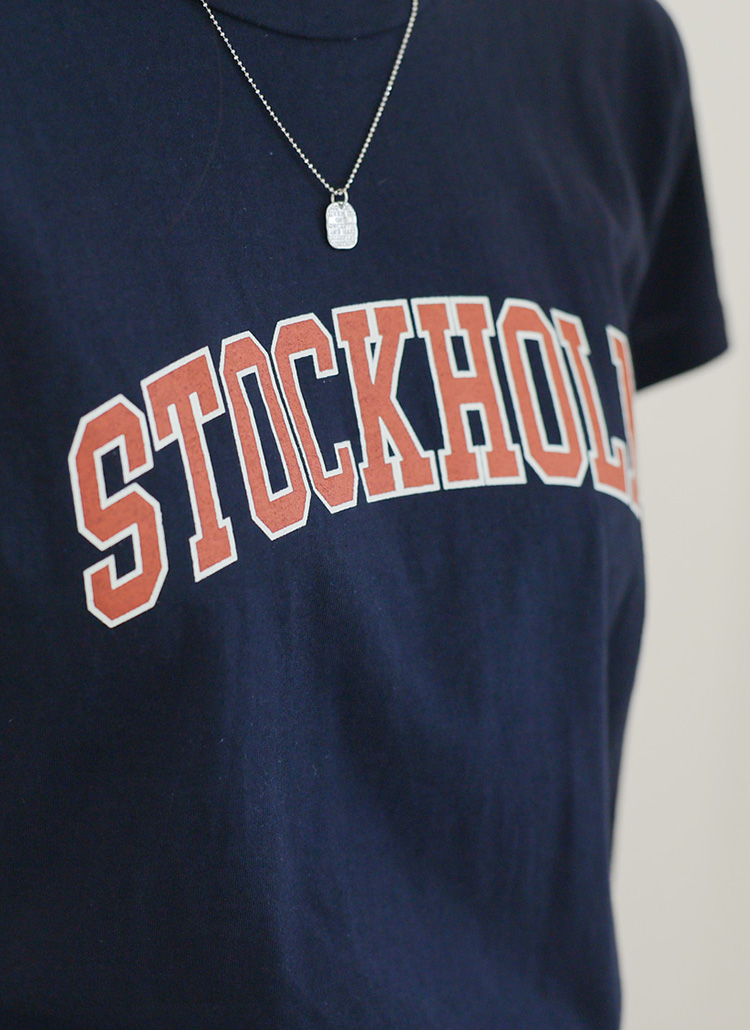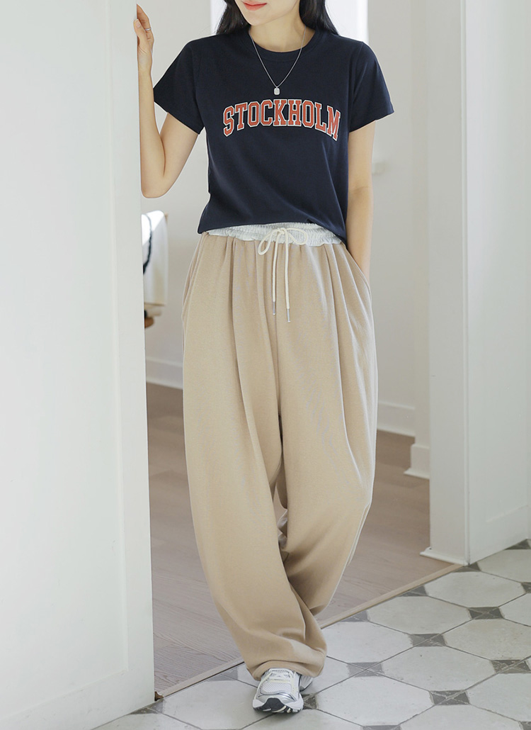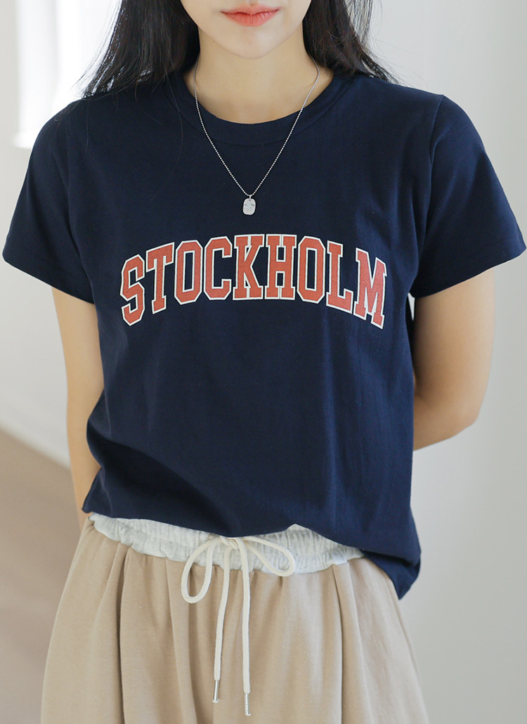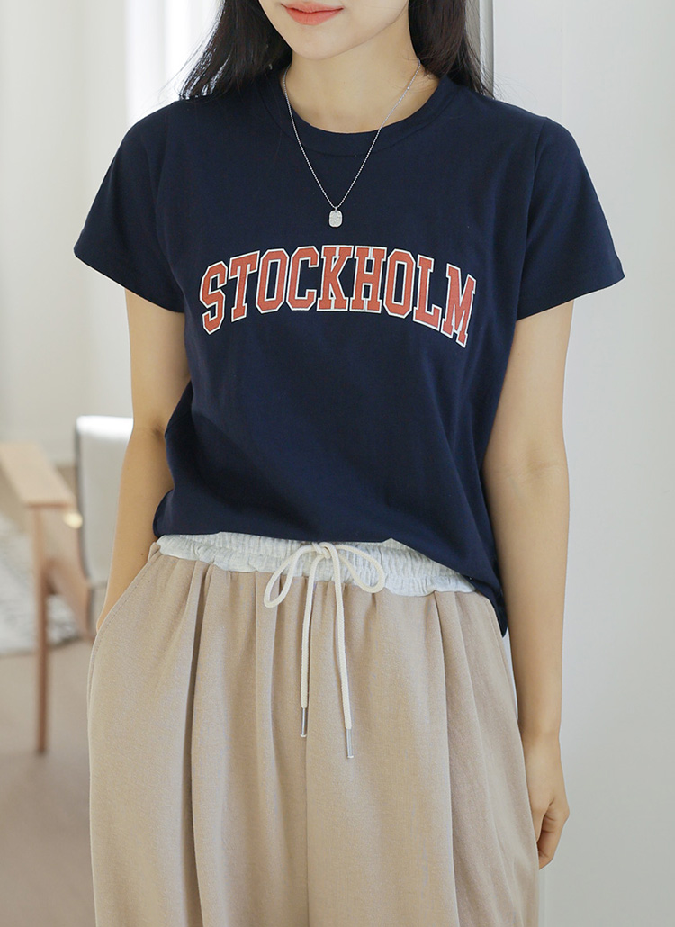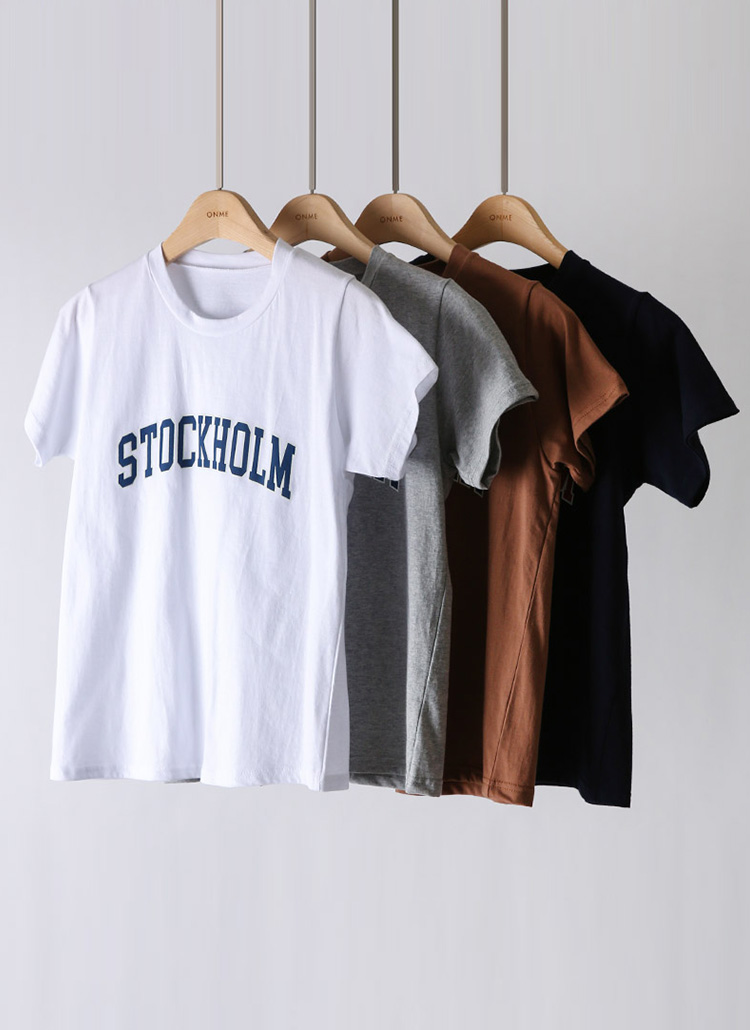 [Theonme] 스톡홀룸 배색 레터링 코튼 티셔츠