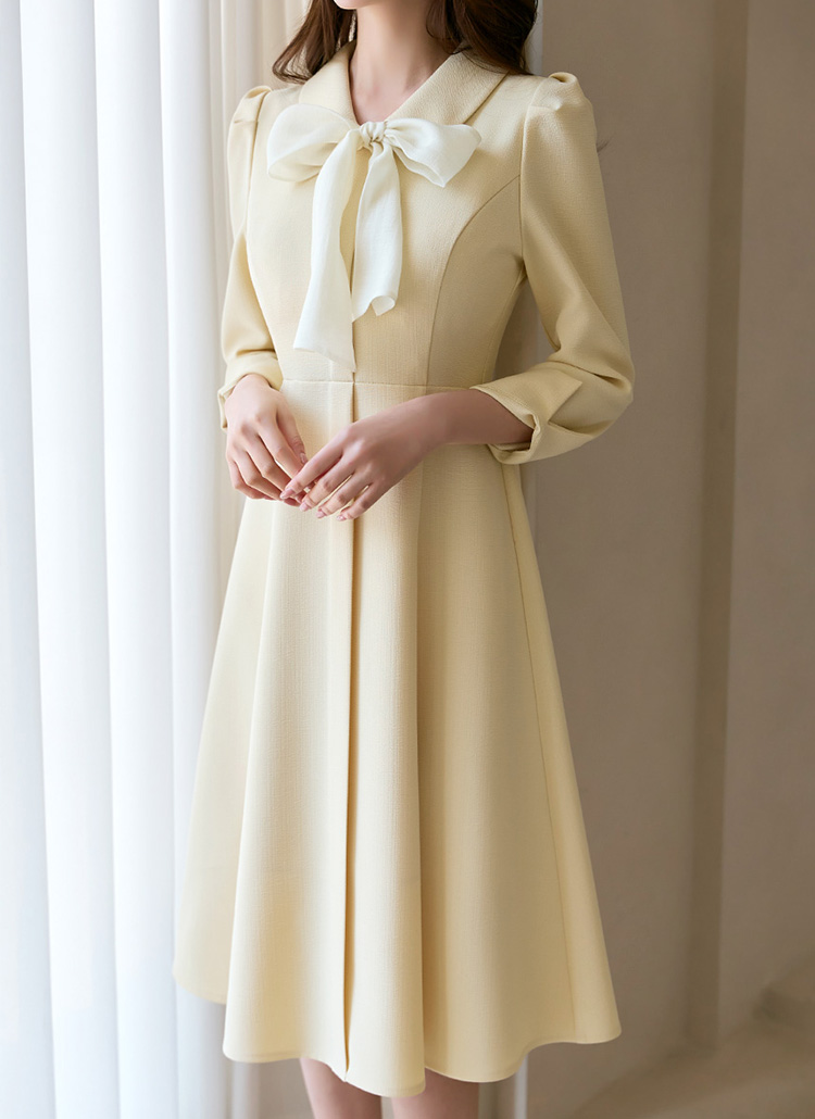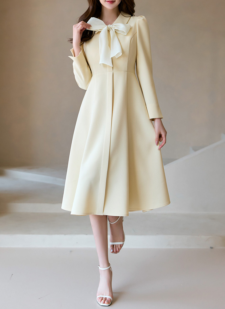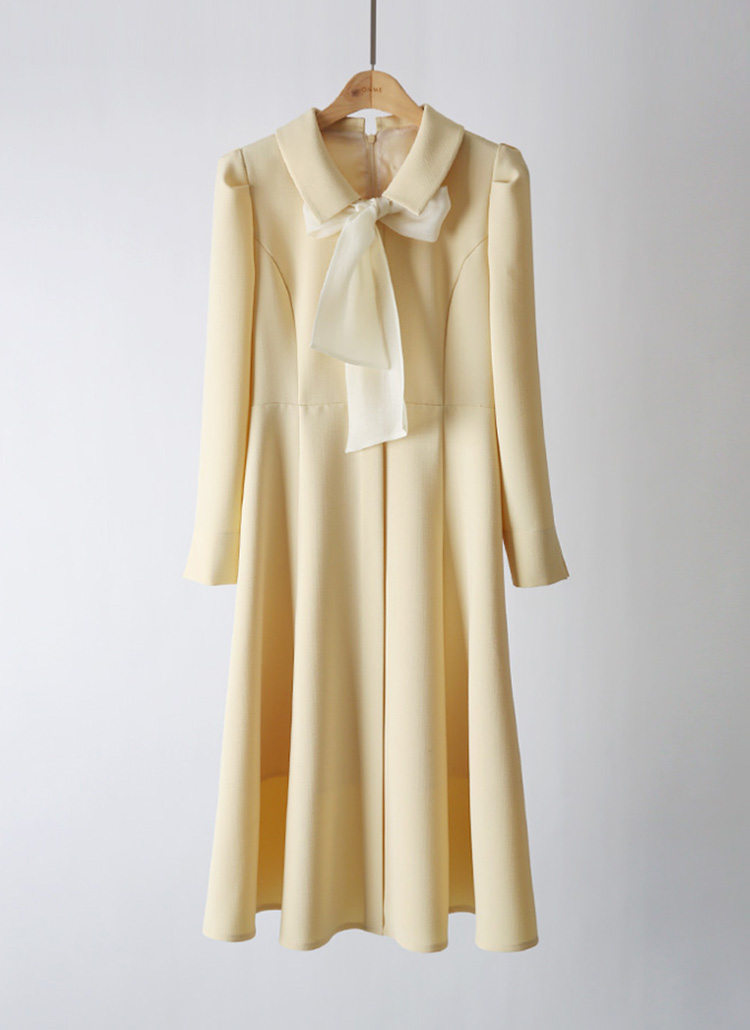 [LouisAngel] 프리지아 리본SET 첼시 카라 A라인 롱 플레어 원피스
