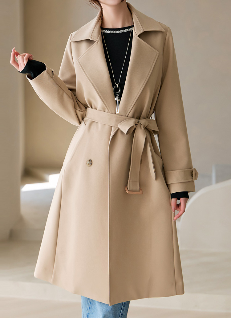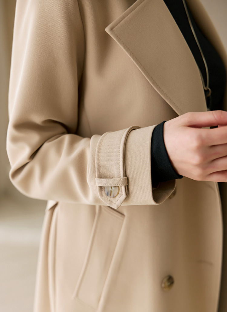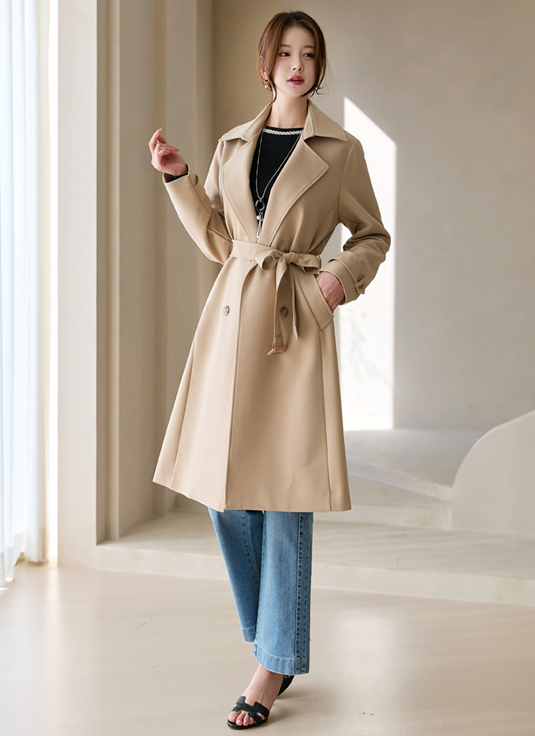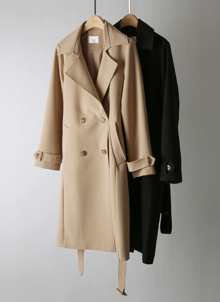 이븐 프렌치 네추럴 비조 라인 벨트SET 더블 트렌치 코트
