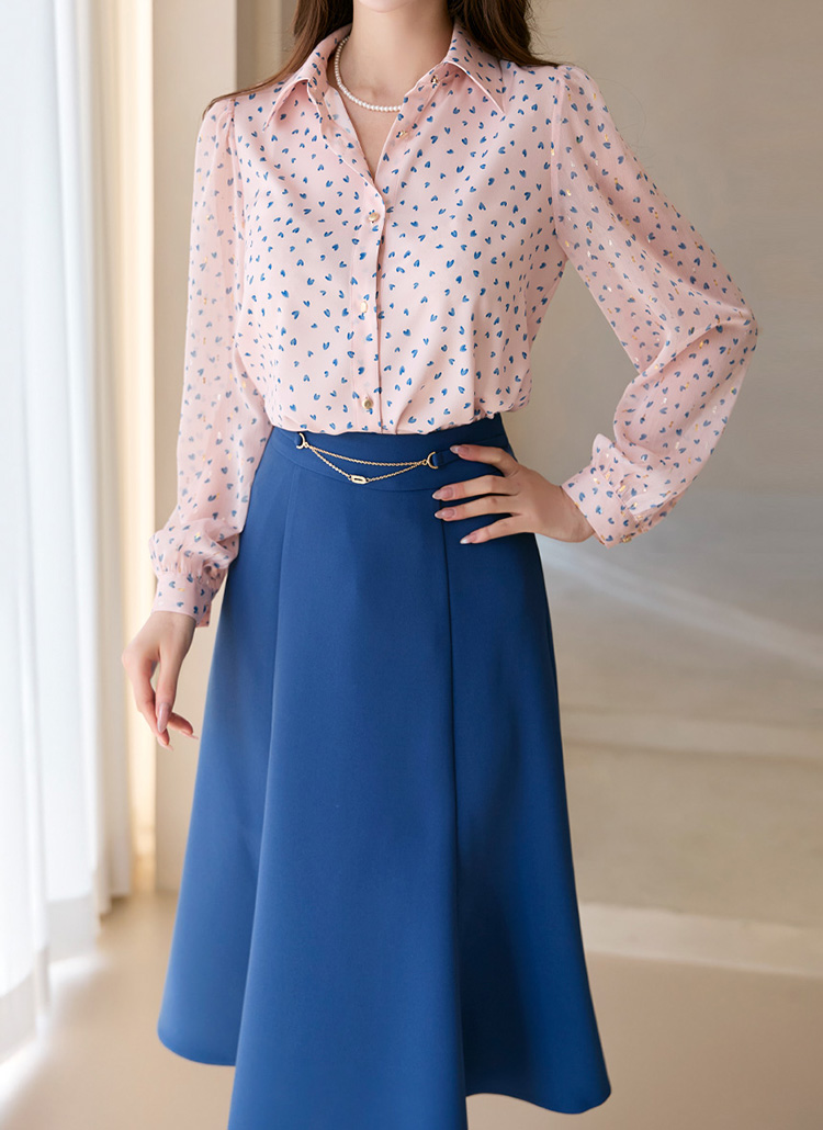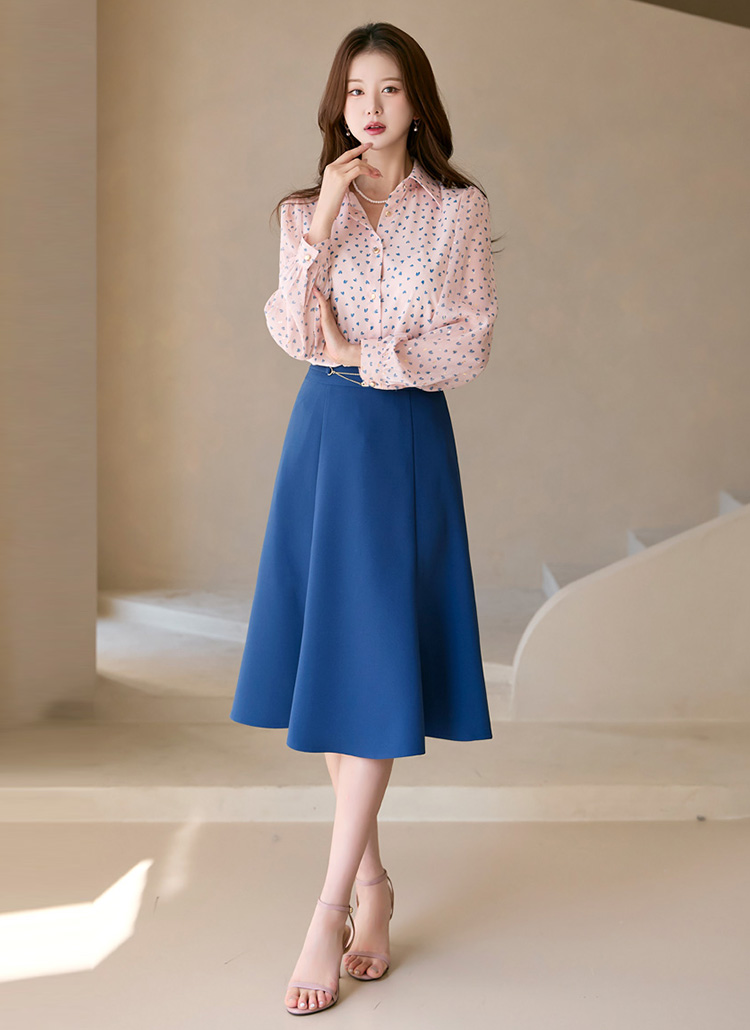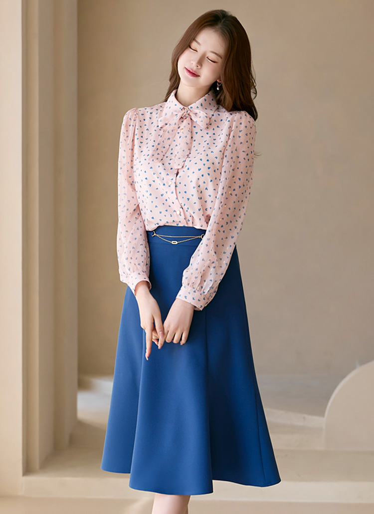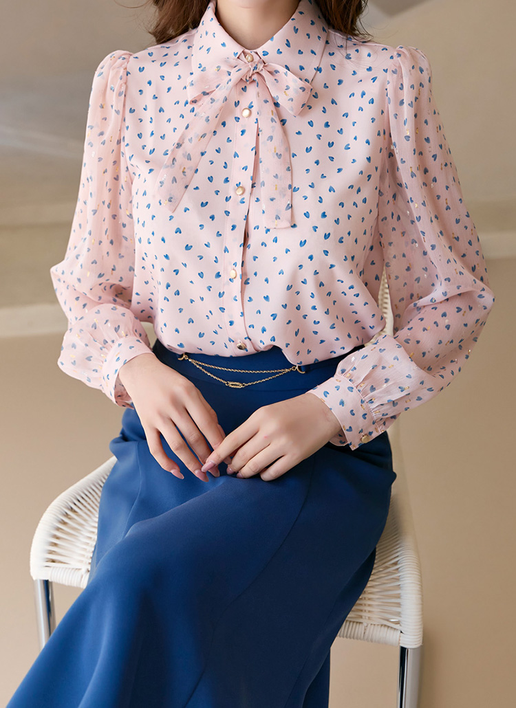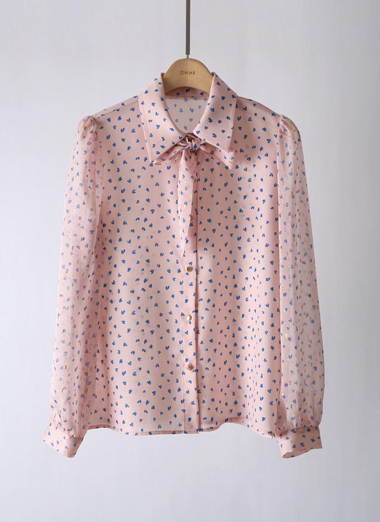 [LouisAngel] 레시아 러블리 미니 하트 펄 도트 쟈가드 쉬폰 배색 블라우스