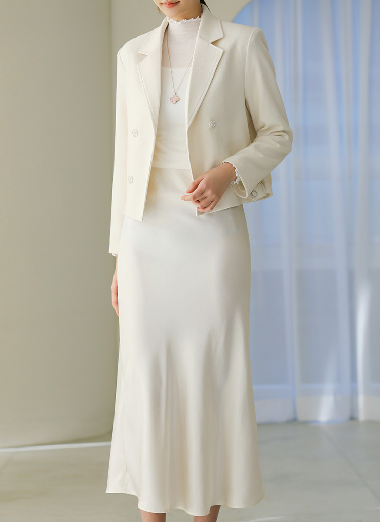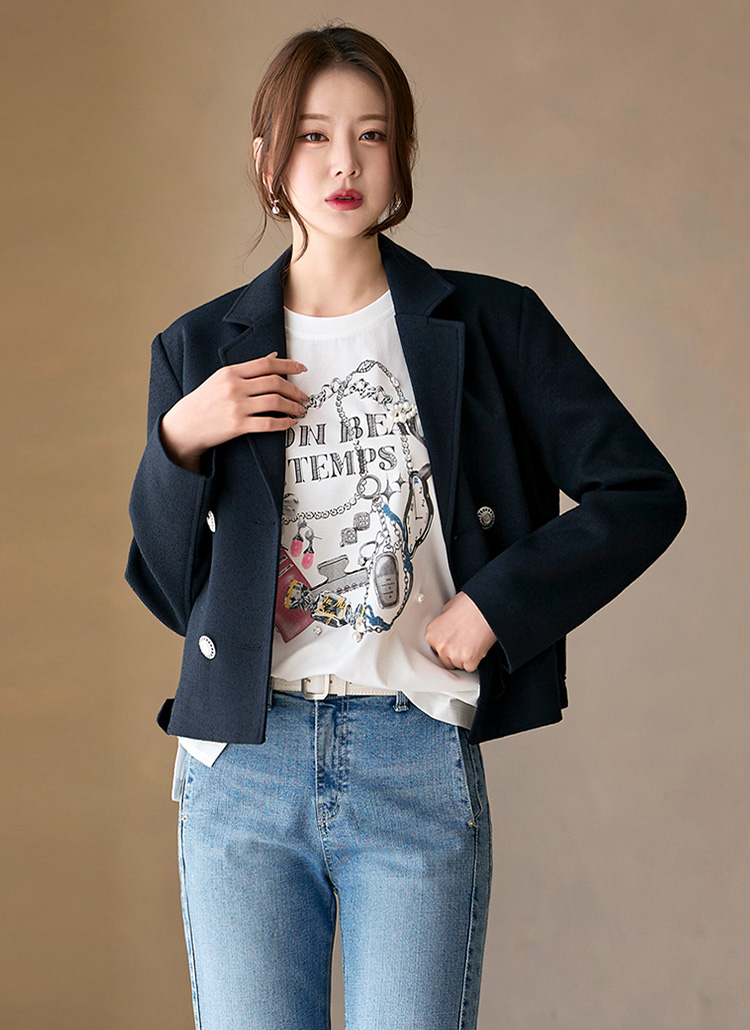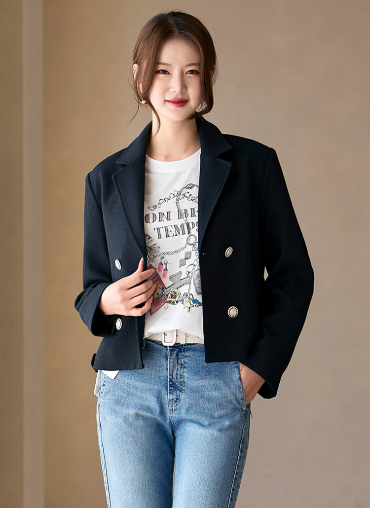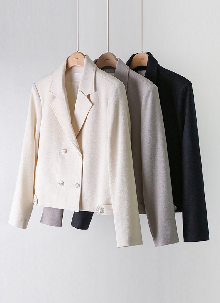 르누 백 밴딩 더블 테일러드 세미 크롭 자켓