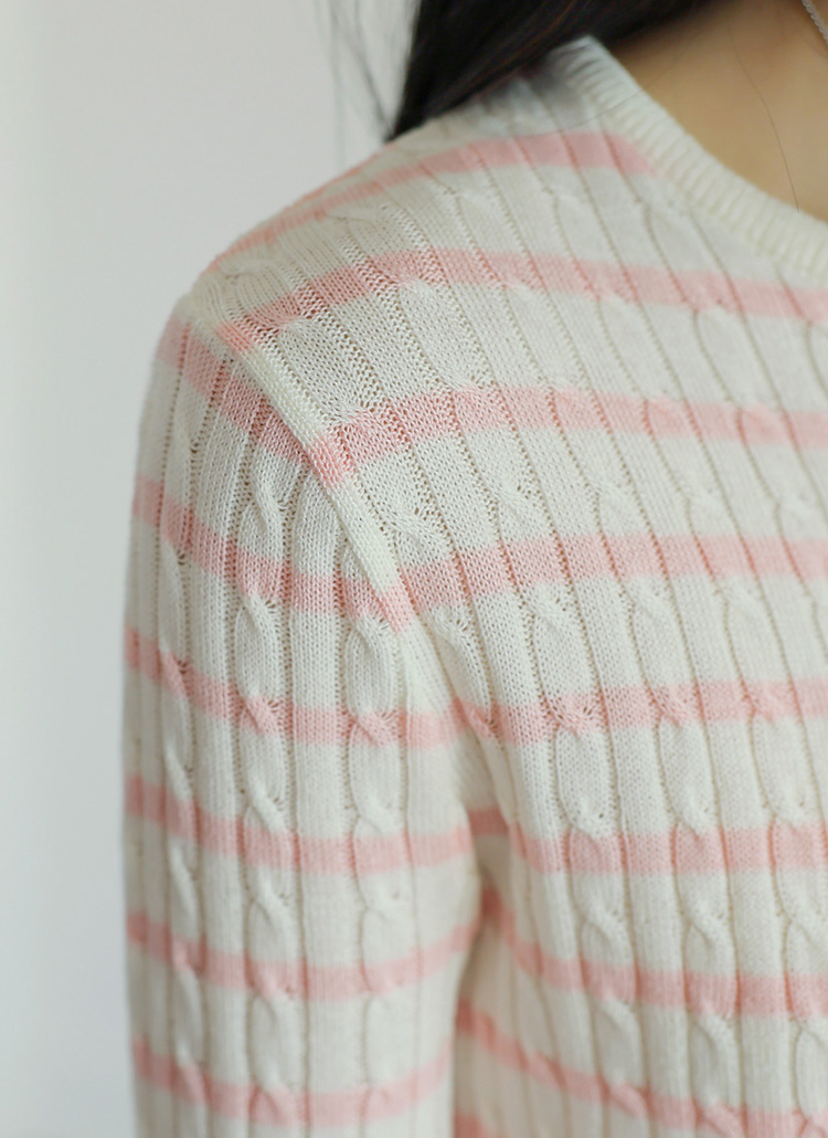 배색 스트라이프 디테일과 꽈배기 패턴으로