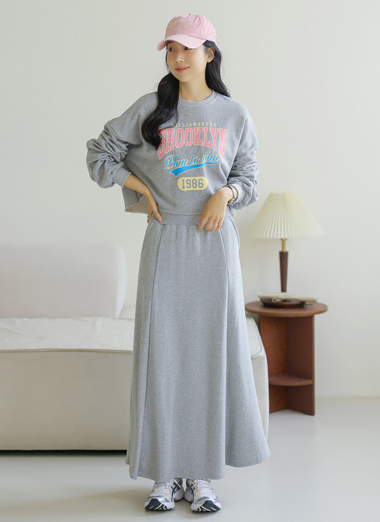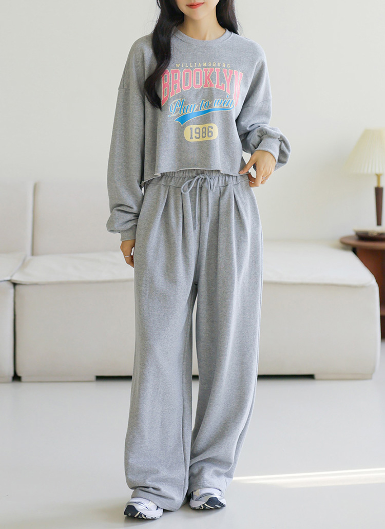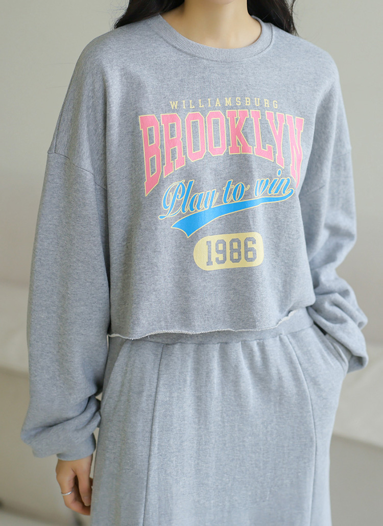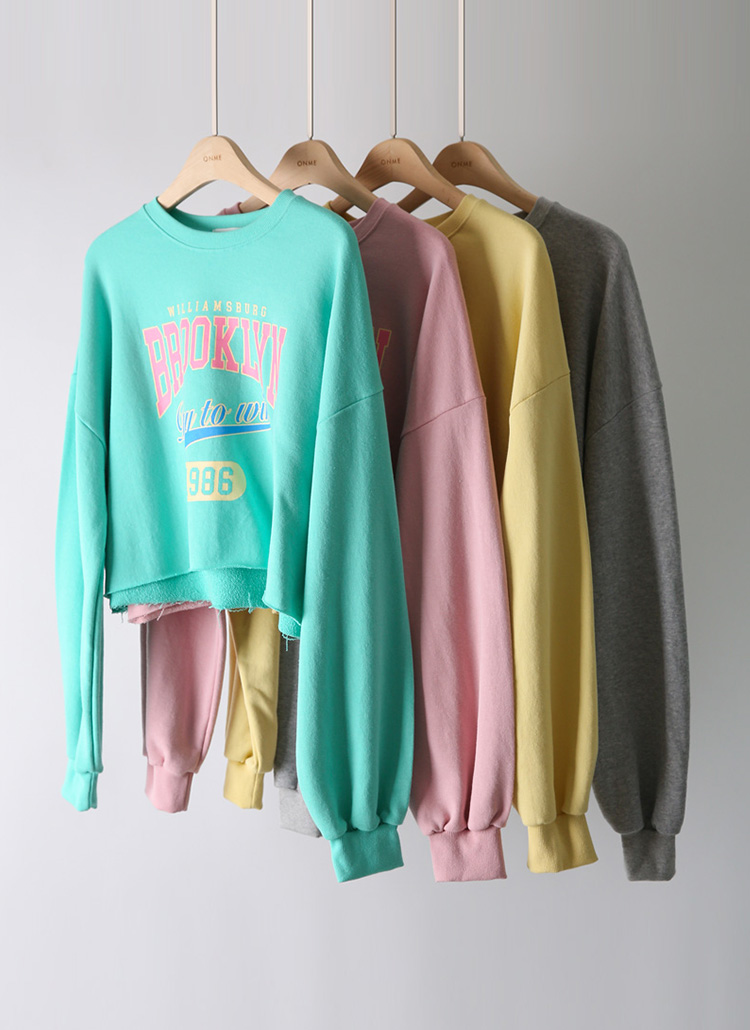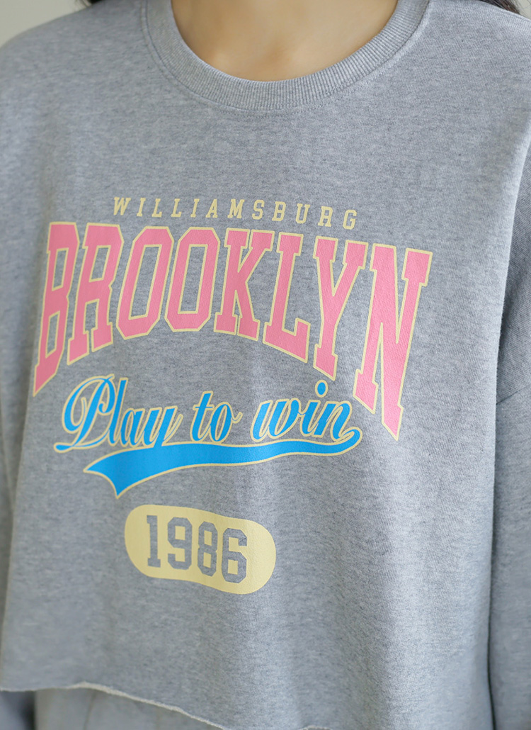 [Theonme] 브루클린 배색 프린팅 컷팅 크롭 맨투맨