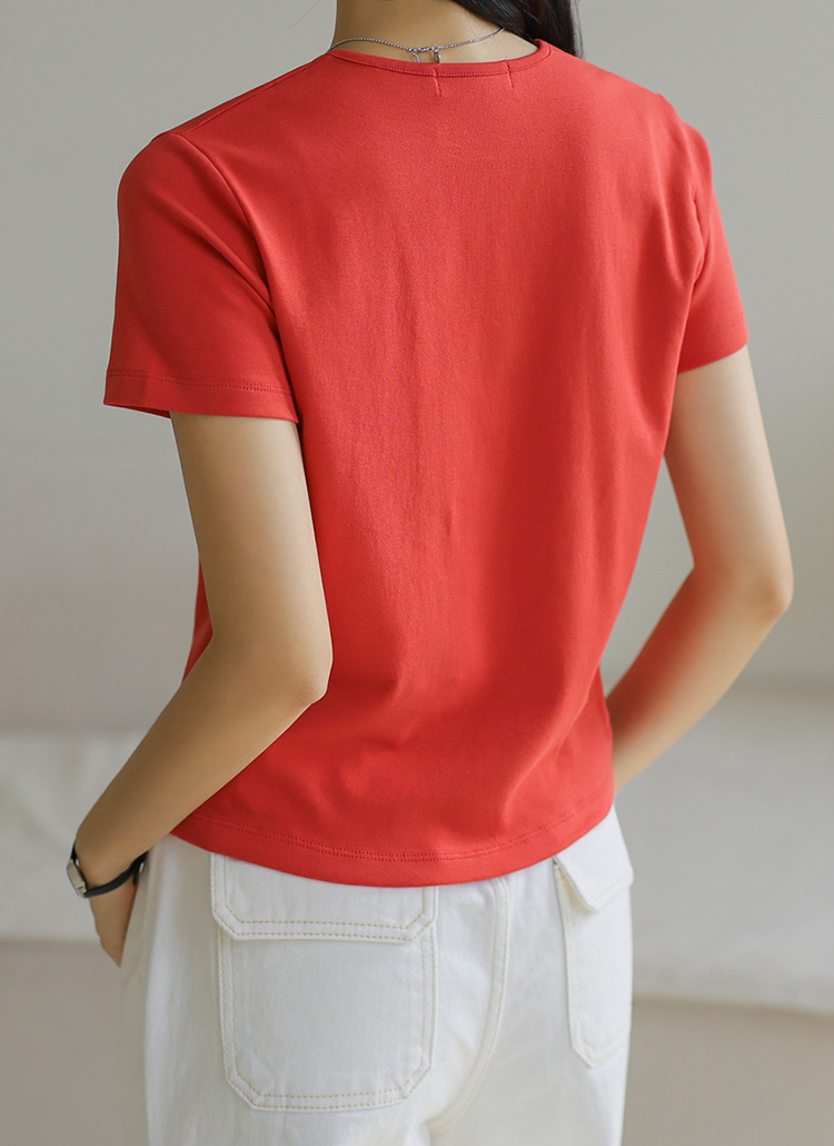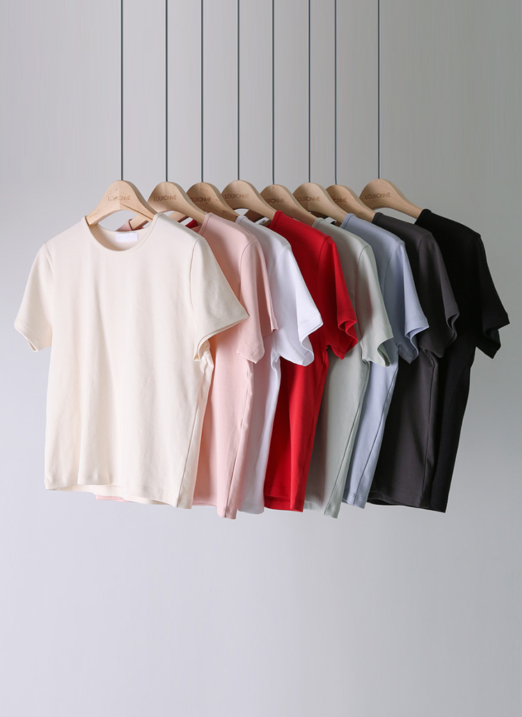 [Theonme] 실켓 스판 고퀄리티 세미크롭 베이직 티셔츠