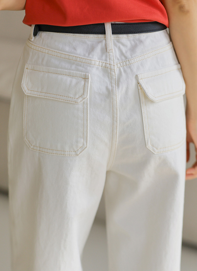[Theonme] 로드인 플랩 포켓 스티치 와이드 코튼 팬츠