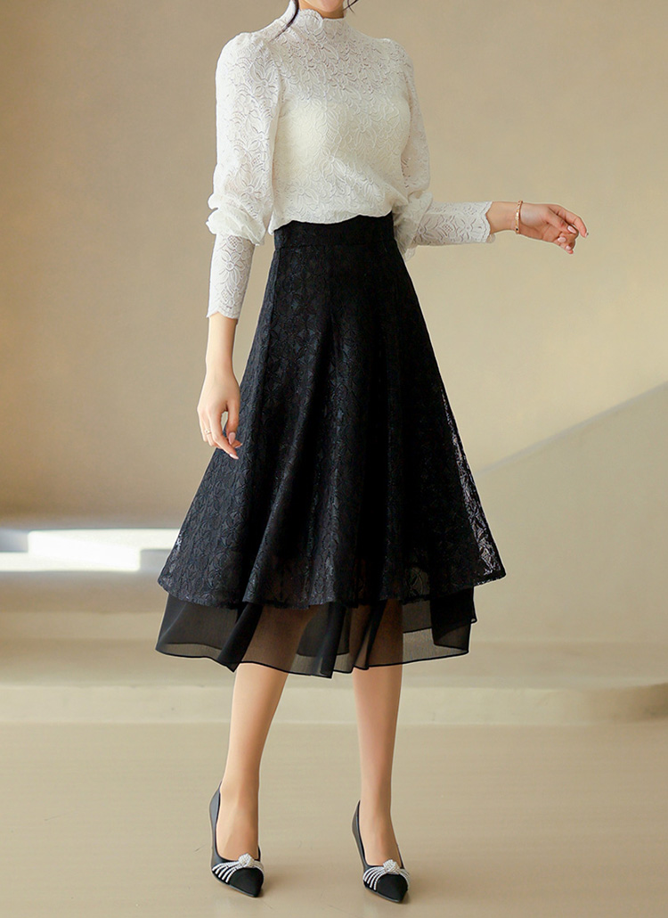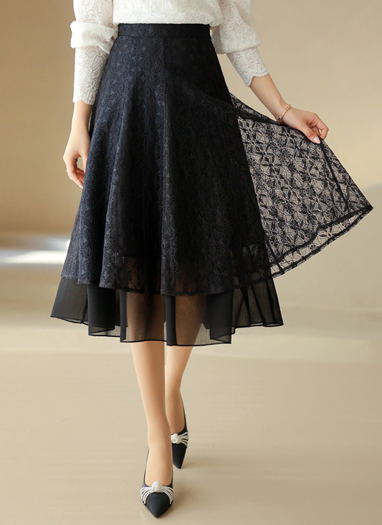 [LouisAngel] 벨루스 드레시 페미닌 이중 플레어 쉬폰 레이어드 A라인 스커트