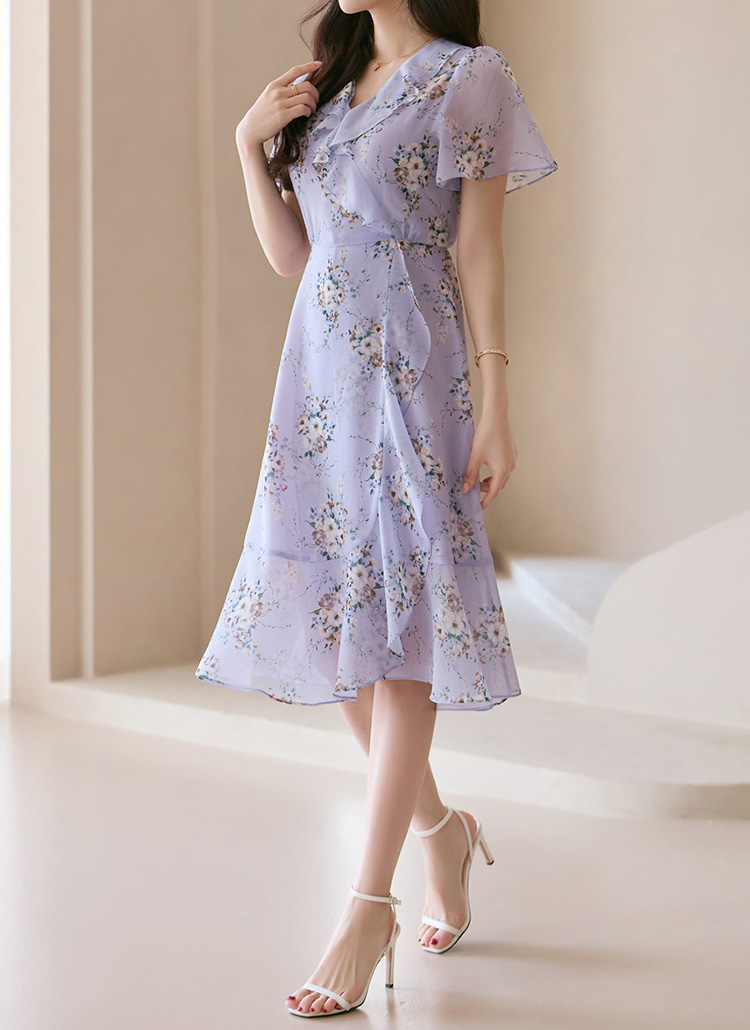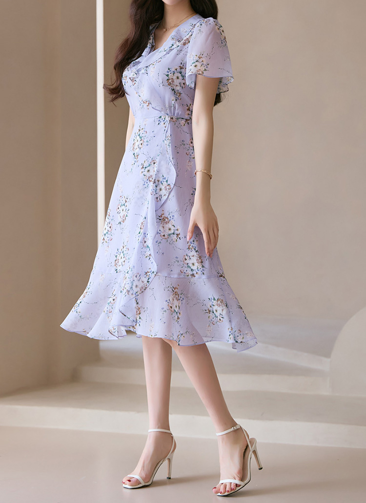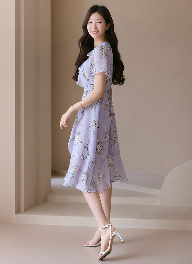 [LouisAngel] 엘리나 블러썸 플라워 요루 쉬폰 프릴라인 랩 원피스