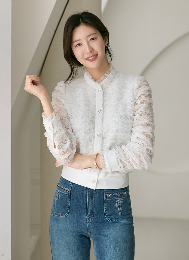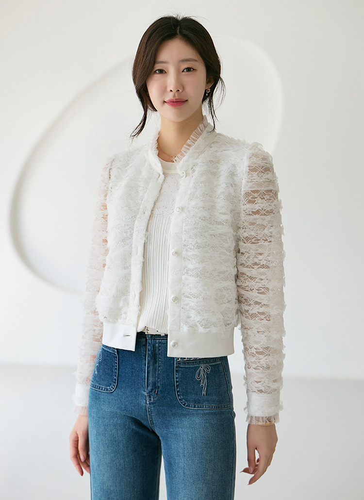 [LouisAngel] 빅토리아 캉캉 레이스 프릴 블라우스 가디건 블루종 자켓