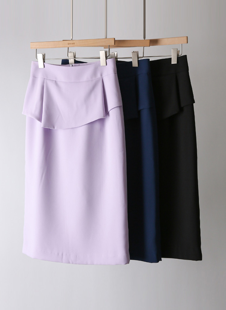 리노 러플 케이프 레이어드 슬림 H라인 미디 펜슬 스커트
