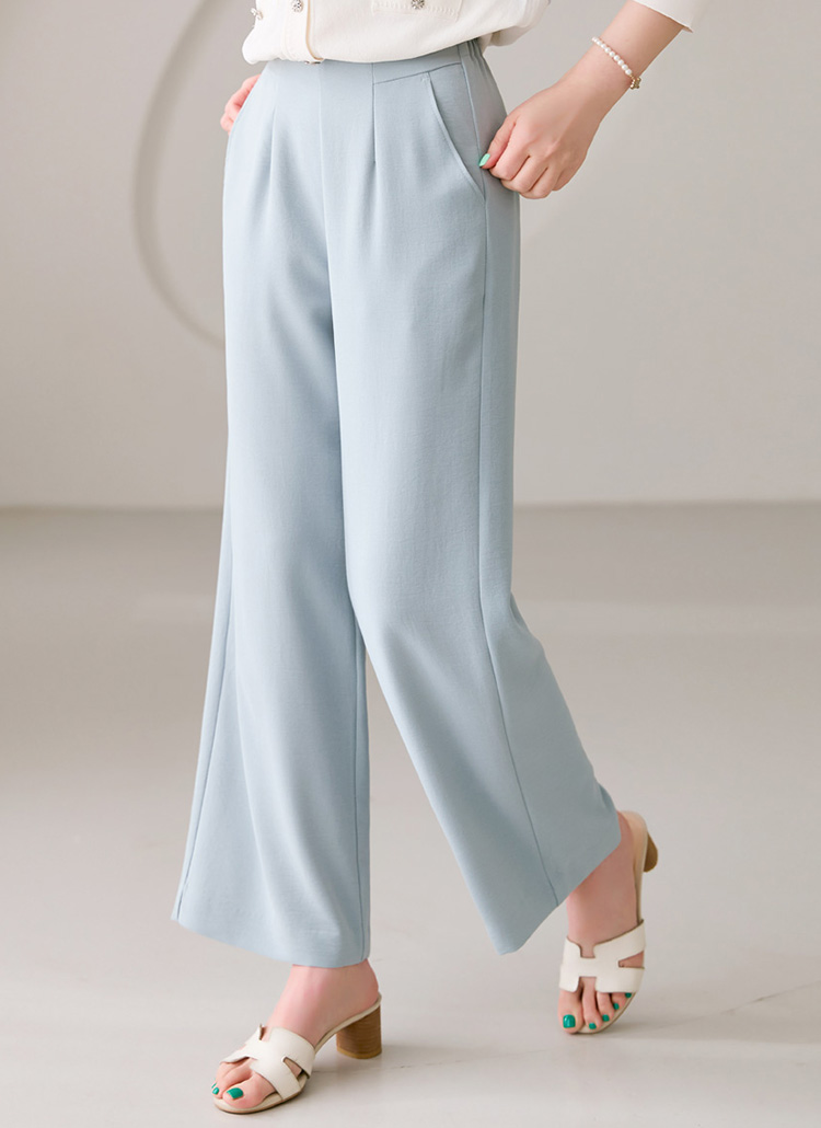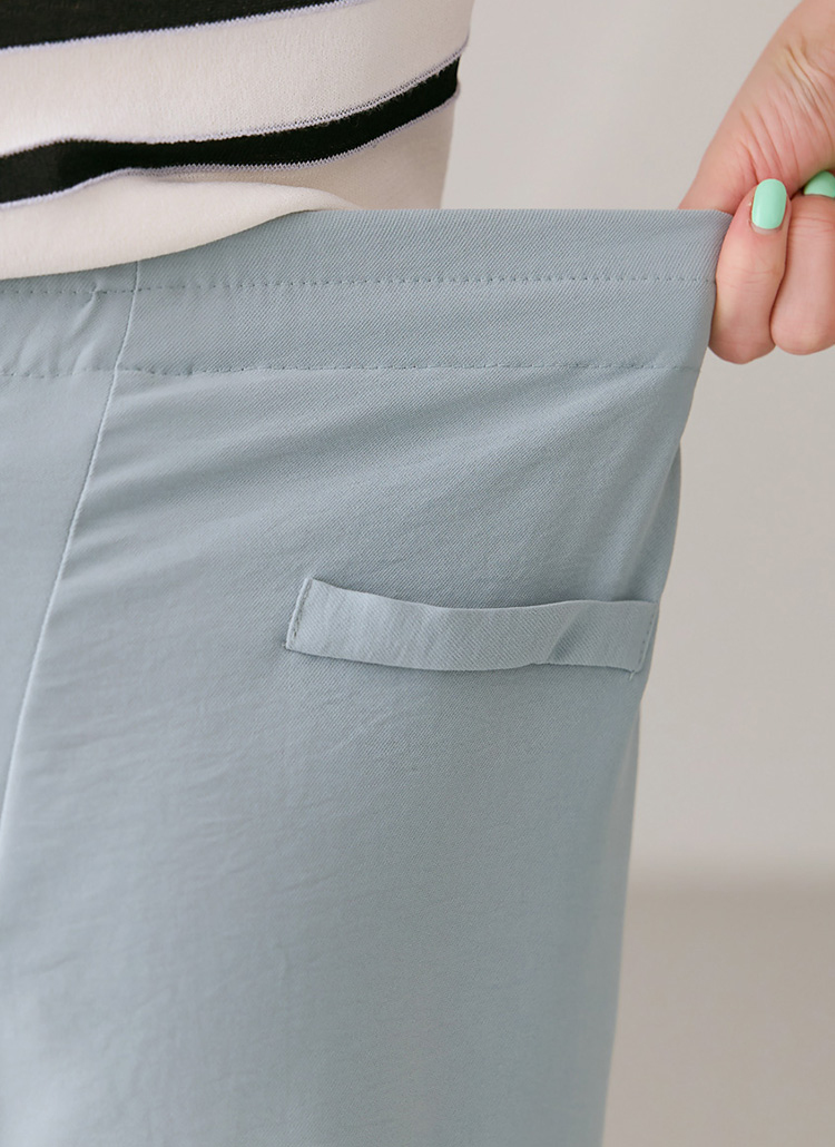 가벼운 찰랑함 절개 포켓 뒷밴딩 와이드 슬랙스