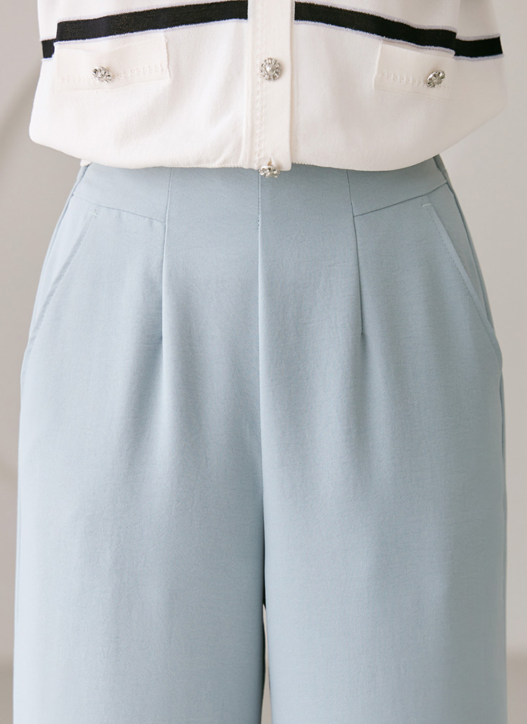 가벼운 찰랑함 절개 포켓 뒷밴딩 와이드 슬랙스