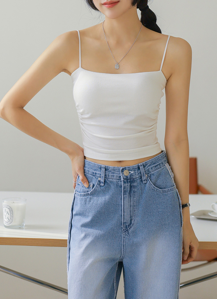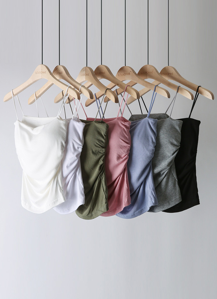 [Theonme][숏/롱기장] 볼륨패드 내장 기장선택 셔링 잔골지 스판 나시
