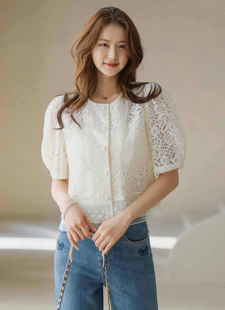 사랑스러운 무드가 가득한 레이스 자켓 겸 블라우스에요 :)