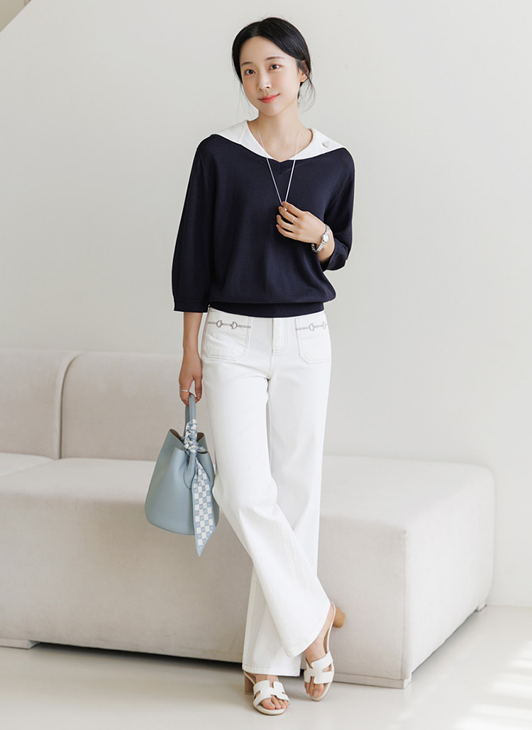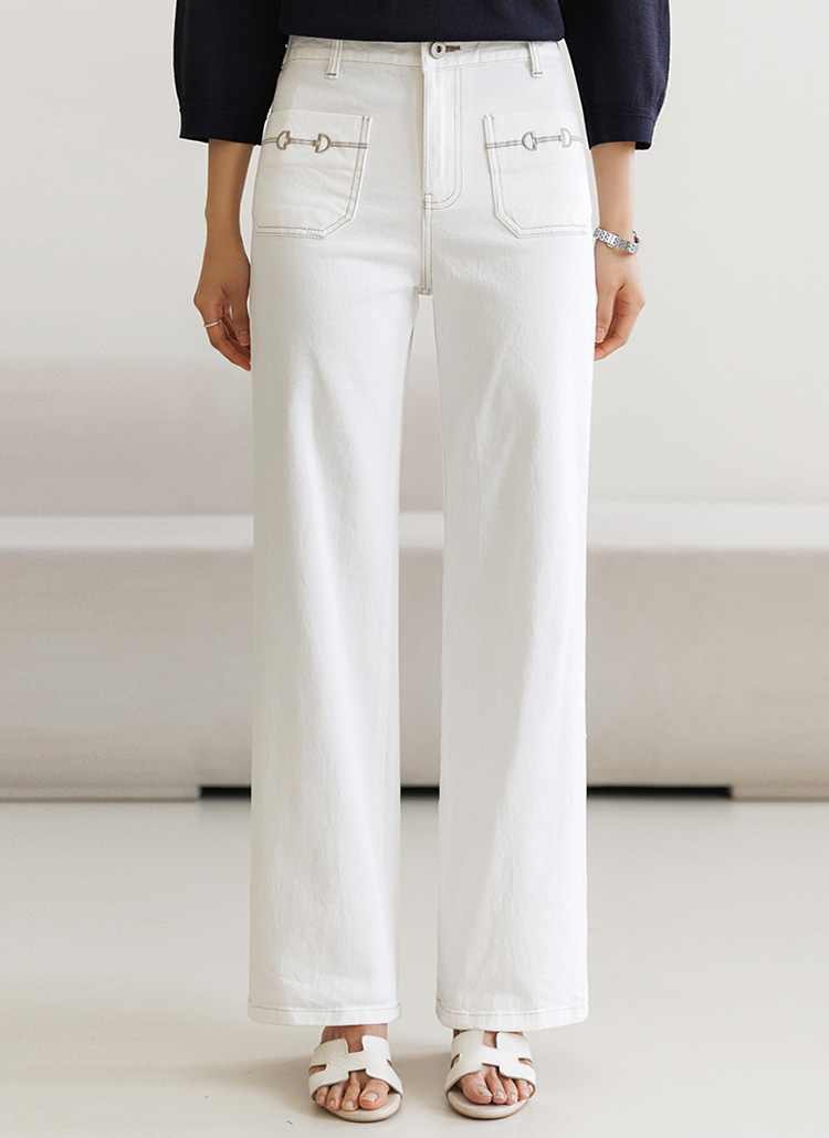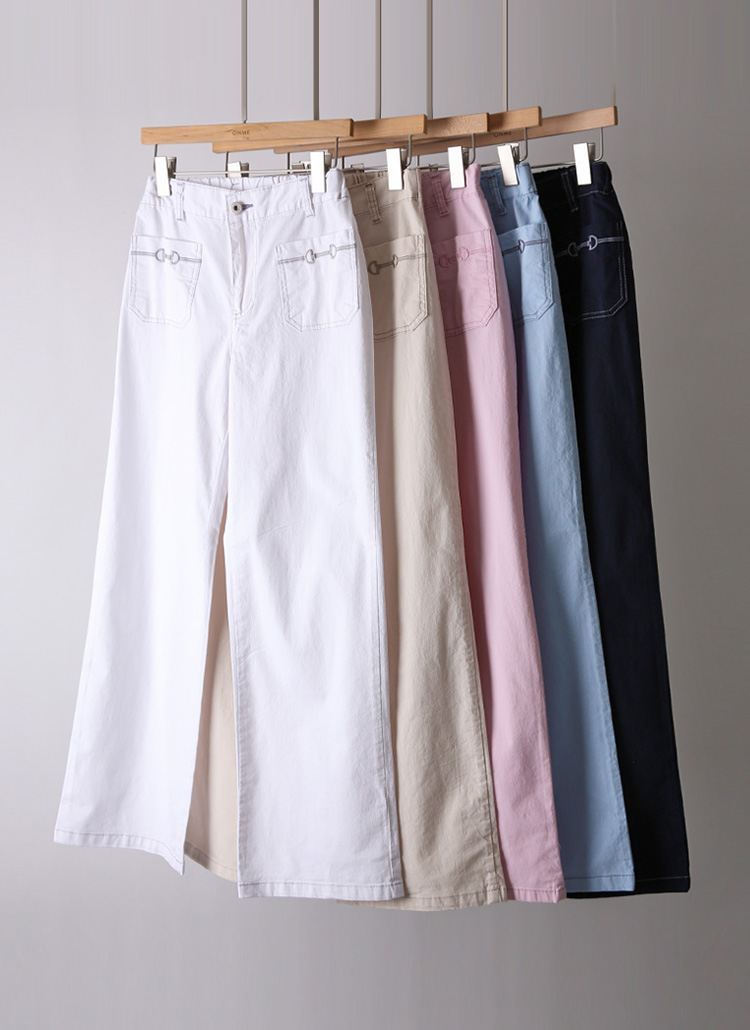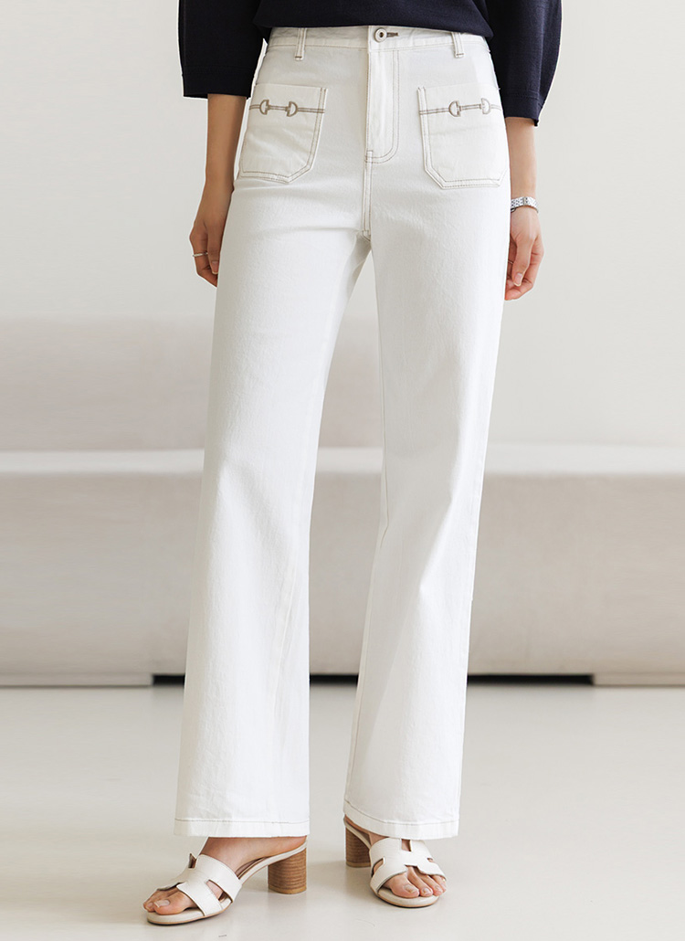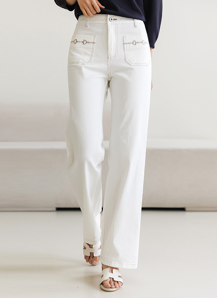 [Theonme] 앞포켓 자수 스판 뒷밴딩 스트레이드 일자 코튼 팬츠