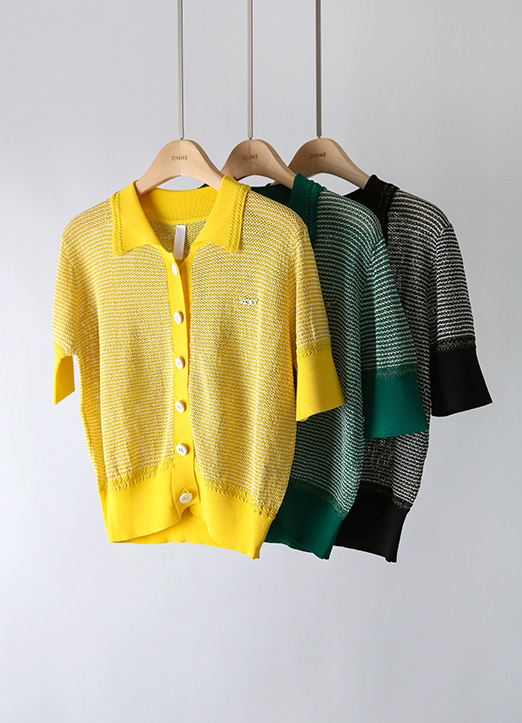 [QoG] 골프 메탈원사 숏 니트 가디건_3color