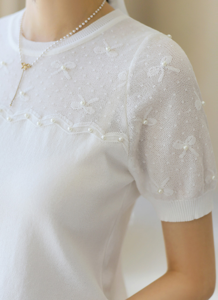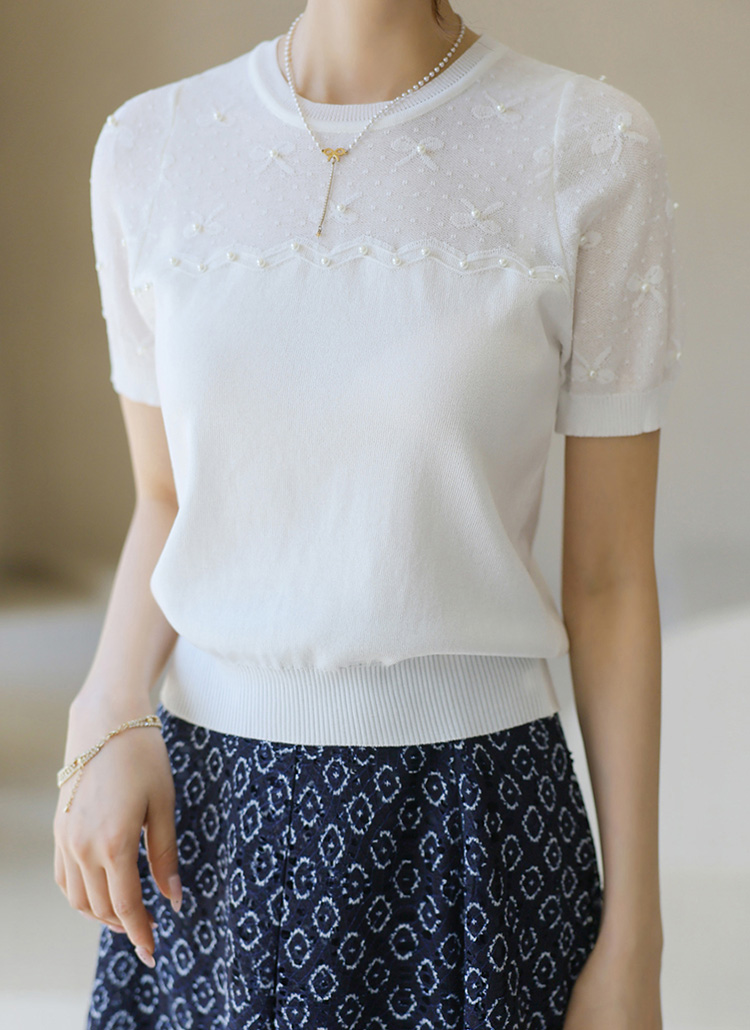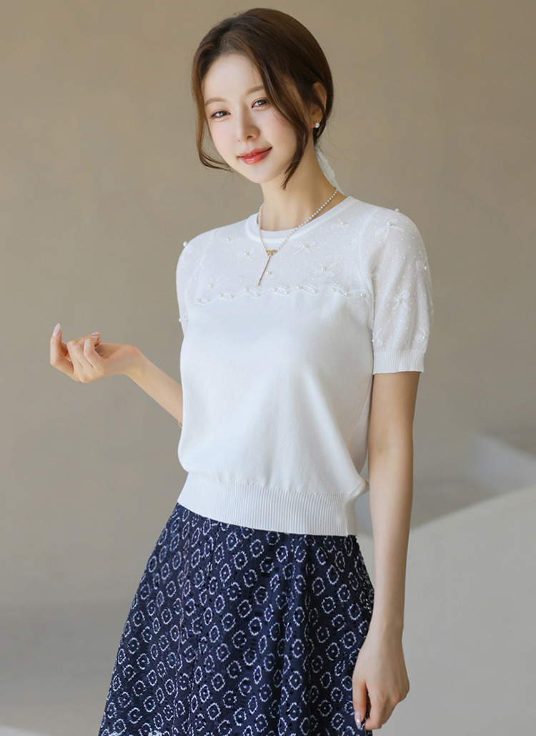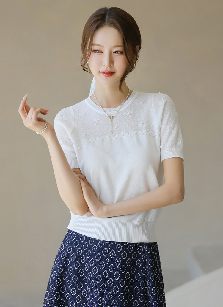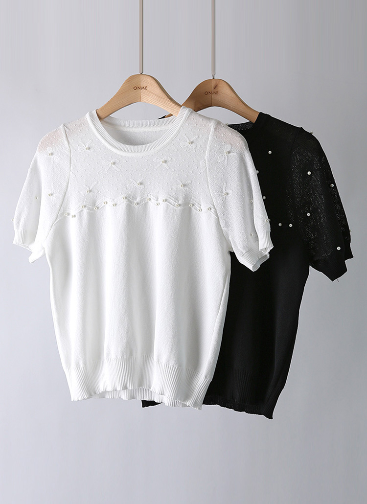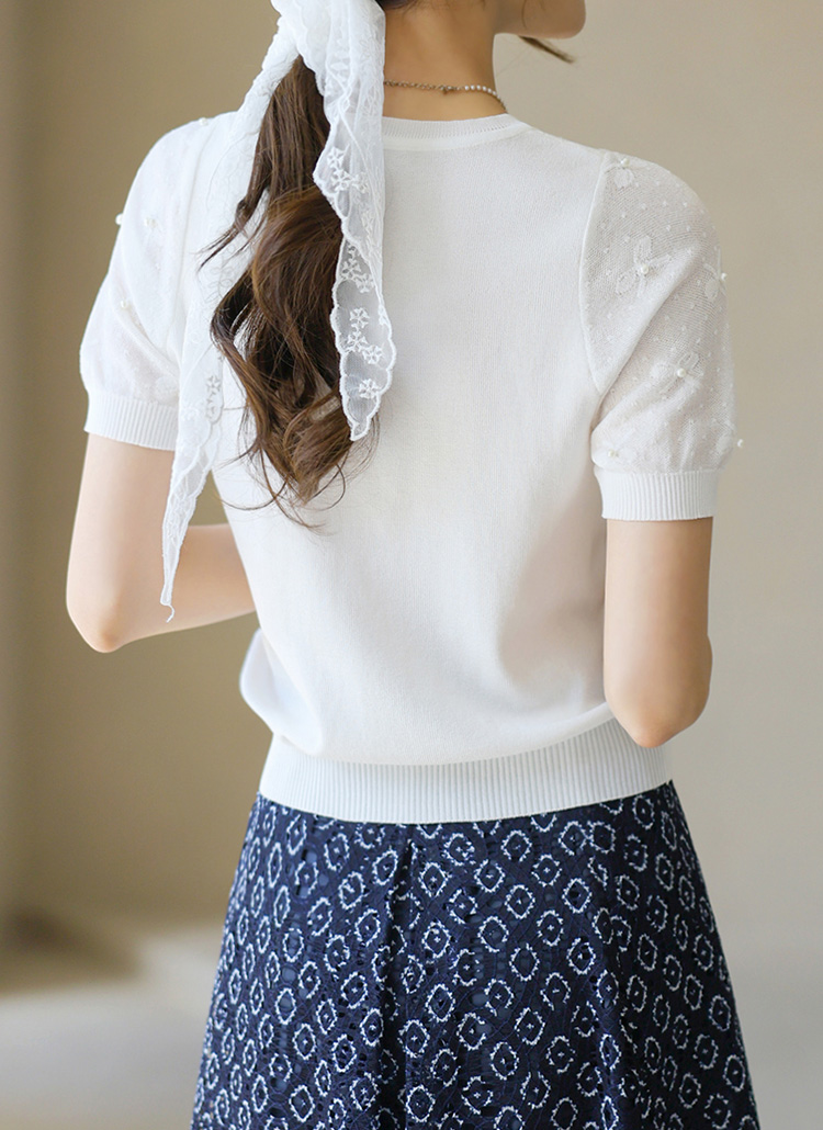 소매와 어깨 부분의 살짝 비침이 있는 스카시 짜임으로