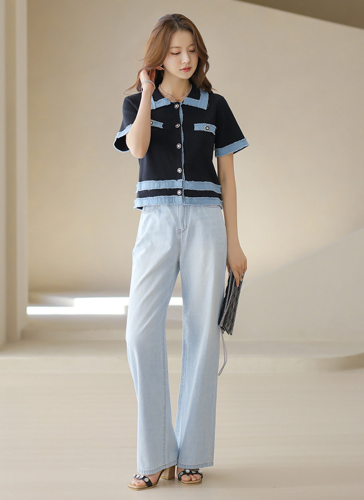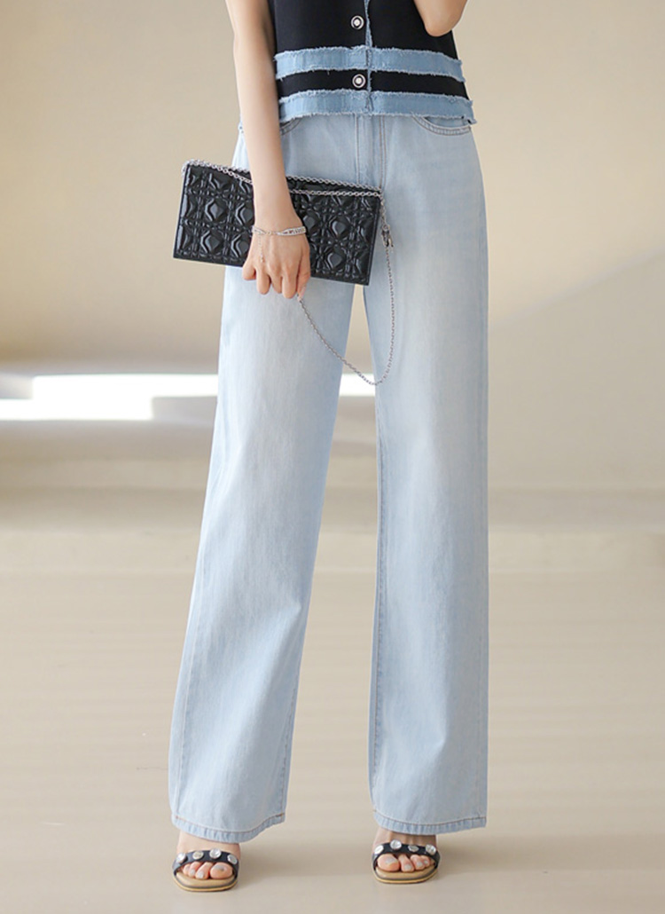 시원한 아이스 블루톤에 일자로 쫙 뻗어내려오는 세미와이드 핏으로