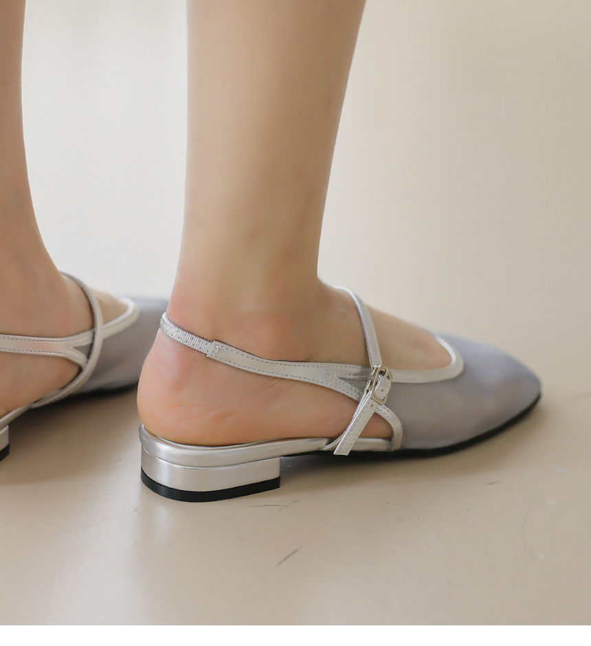 롤리아 메리제인 스트랩 매쉬 슬링백 플랫 슈즈