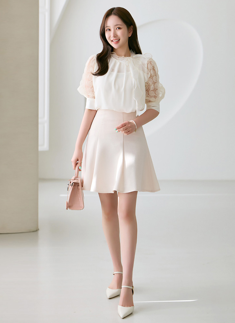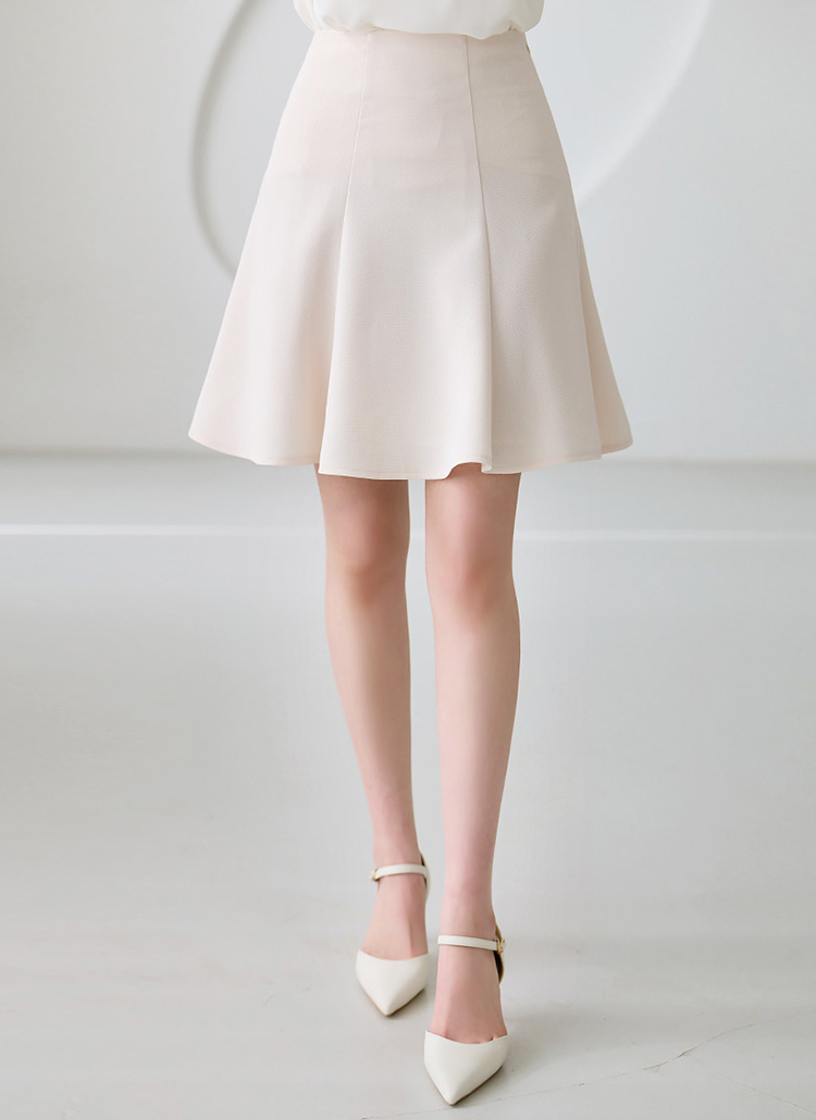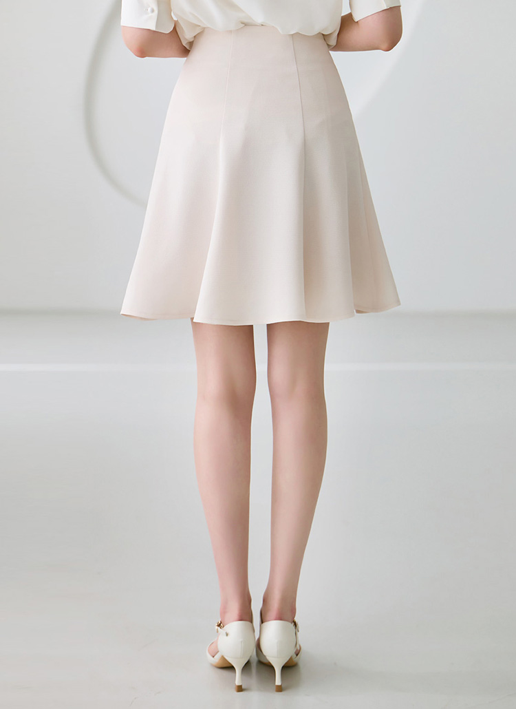 세련된 절개 디테일로 볼륨감을 살린 플레어 미니 스커트에요 :)