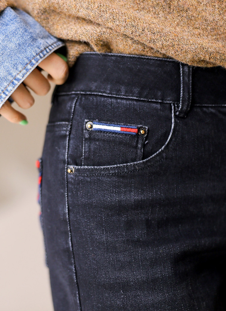 사선으로 들어간 백포켓 자수 디테일이 세련된 멋스러움을 선사하는