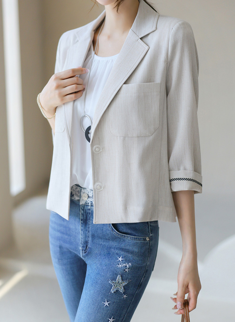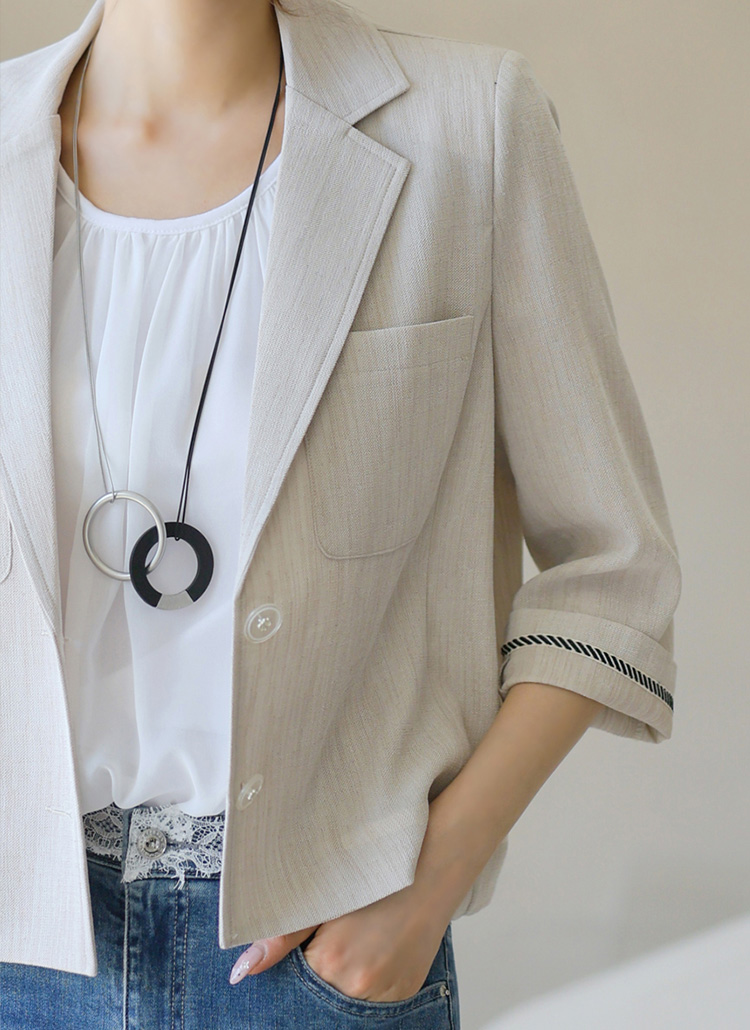 에어브 사각사각 린넨 라이크 소매 배색 테일러드 자켓