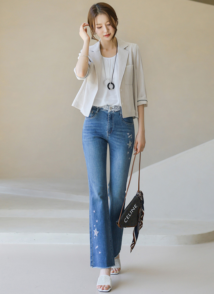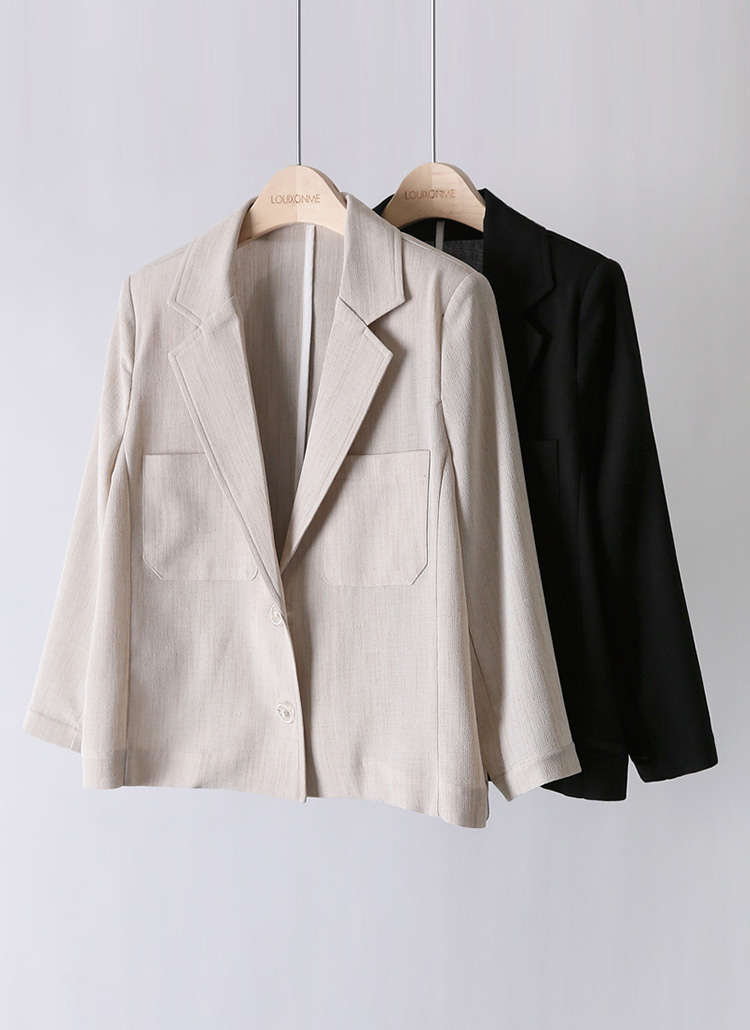 사각사각~ 린넨 라이크 원단으로 시원하고 쾌적한 착용감을 선사하는 테일러드 자켓이에요 :)