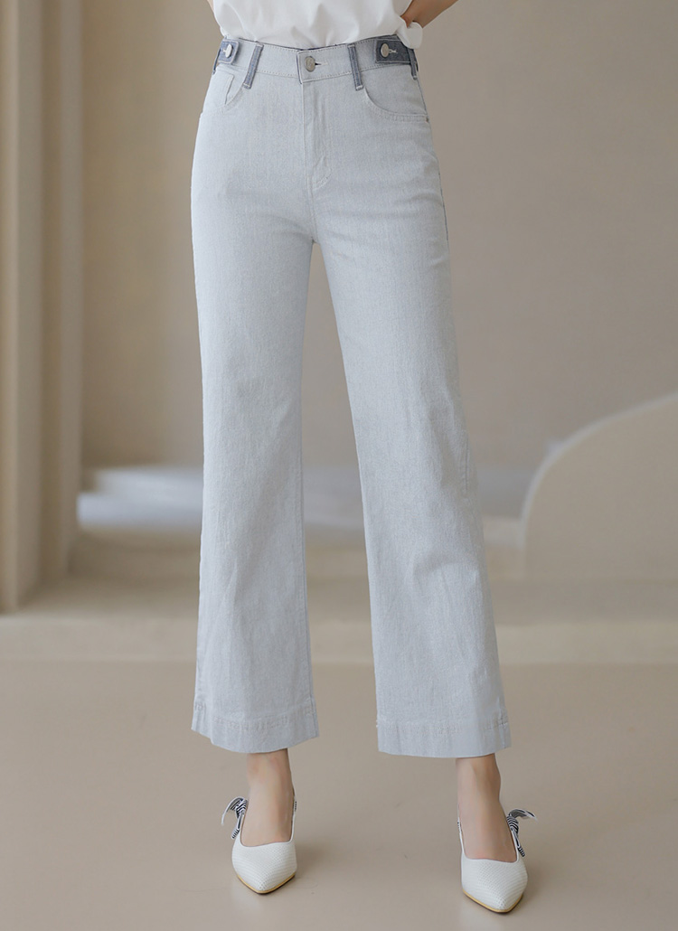 라인더 히든밴딩 면 스판 배색 비죠 디테일 스트레이트 일자 팬츠