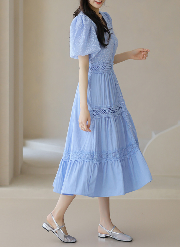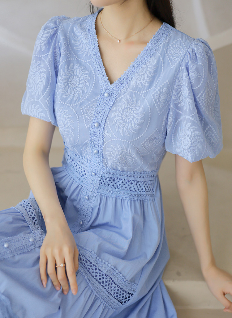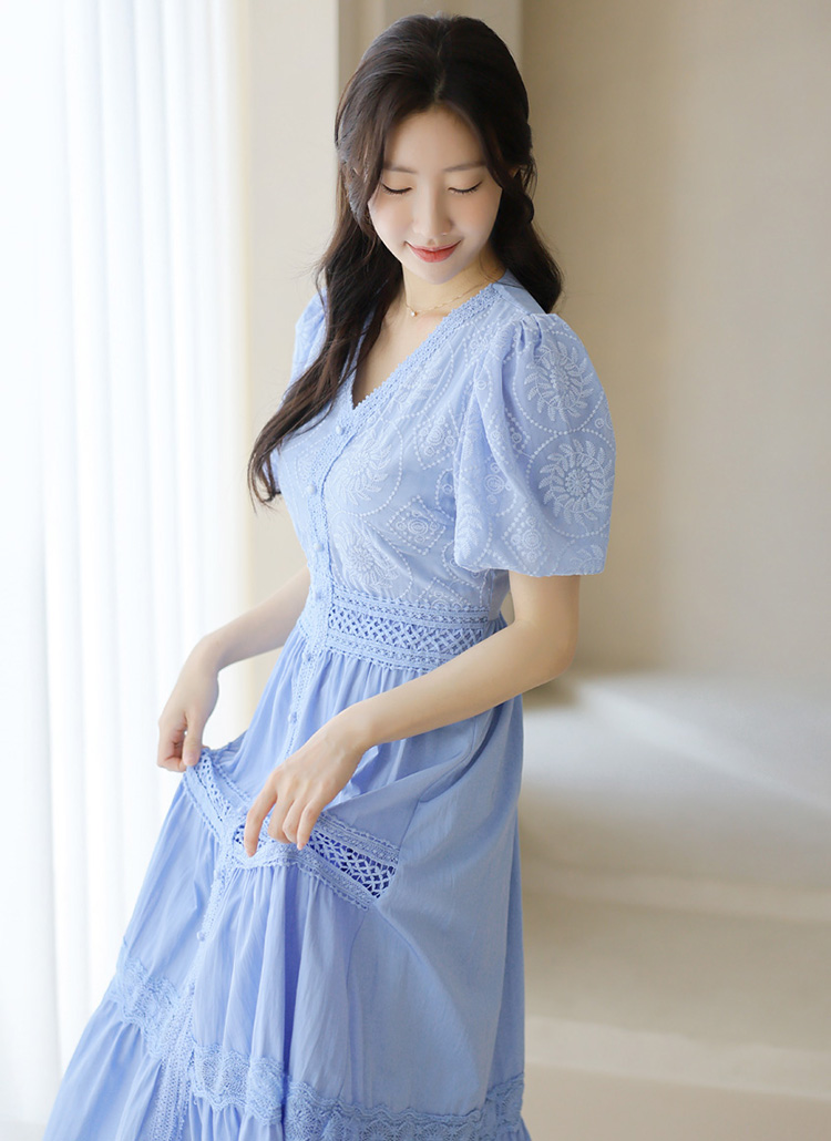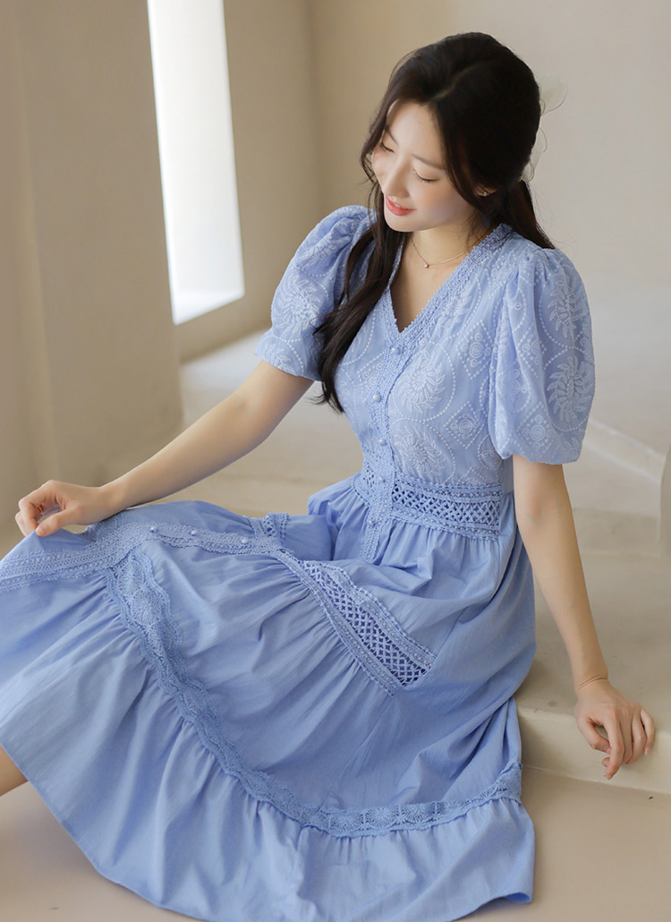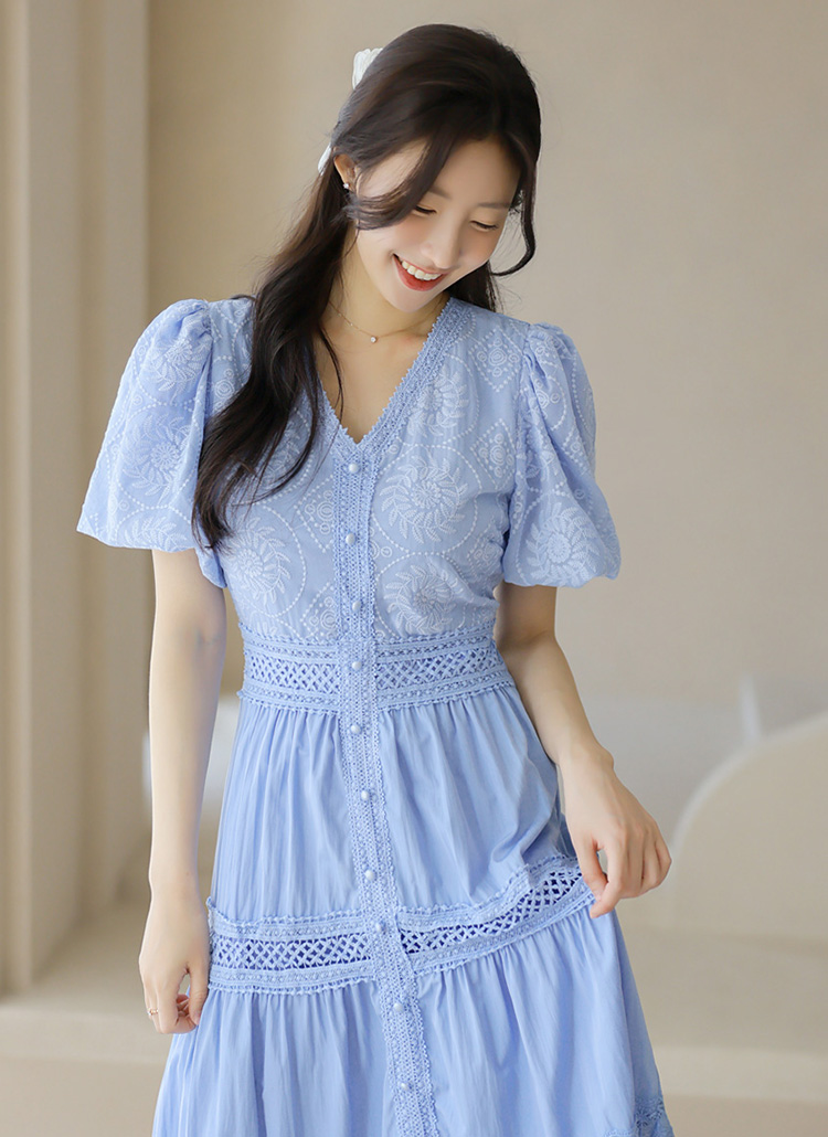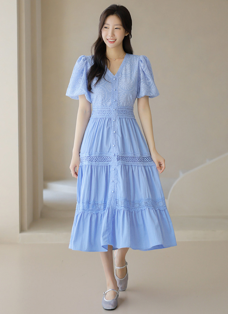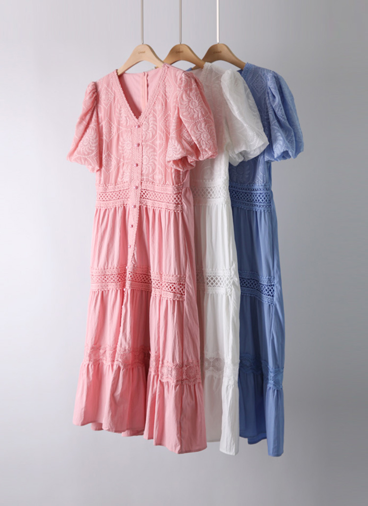 입체적인 자수 패턴과 캉캉 레이스 배색으로