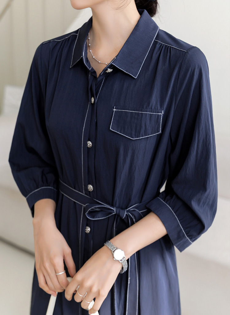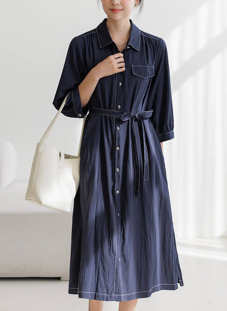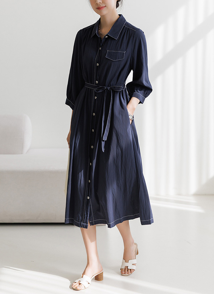 [Theonme] 플랜 인견 나일론 썸머 소재 스티치 벨트set 7부 원피스