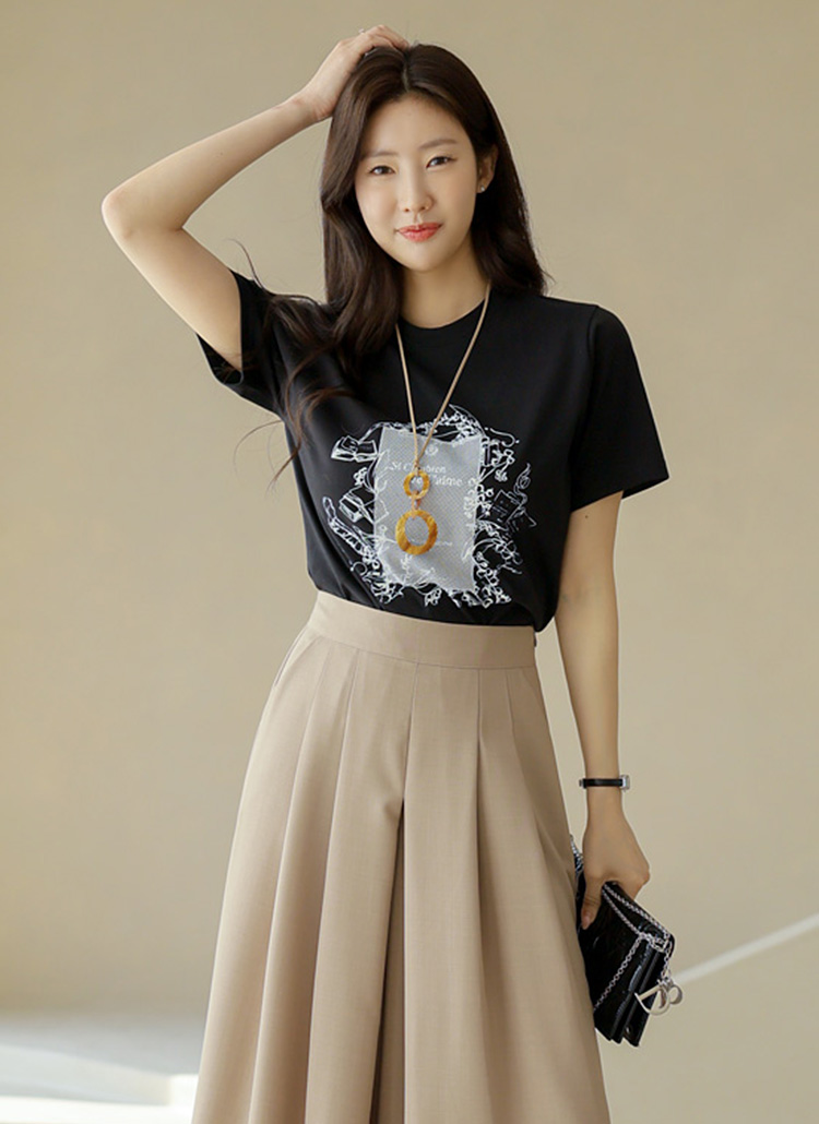 깔끔한 아웃핏에 프린팅 포인트가 돋보이며,