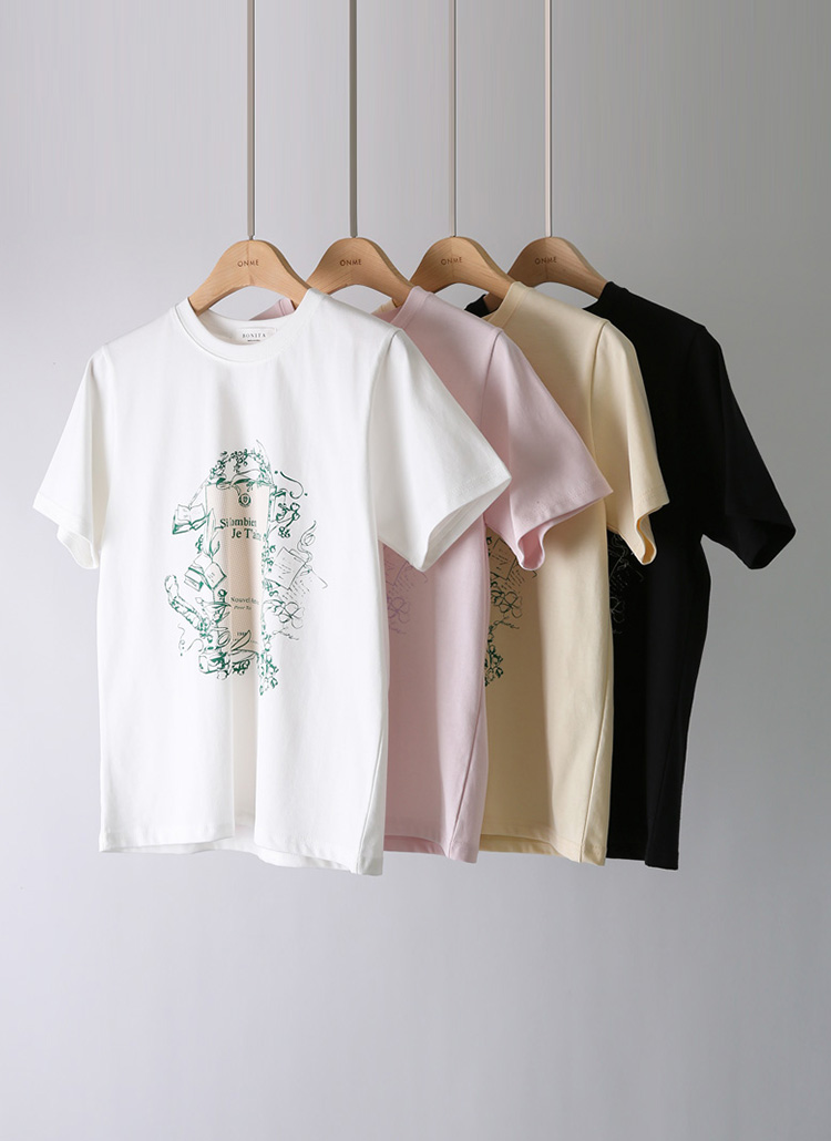 패턴박스에 드로잉이 어우러져 고급지고 에스닉한 무드를 연출하는 프린팅 라운드 반팔 티셔츠에요 :)