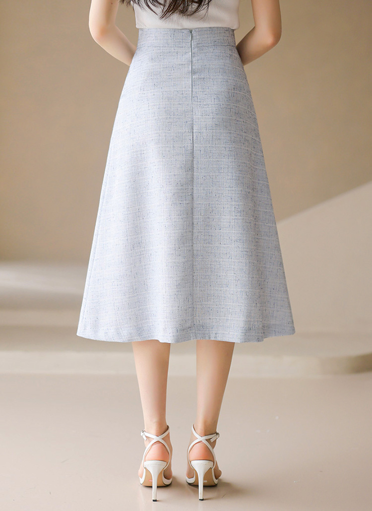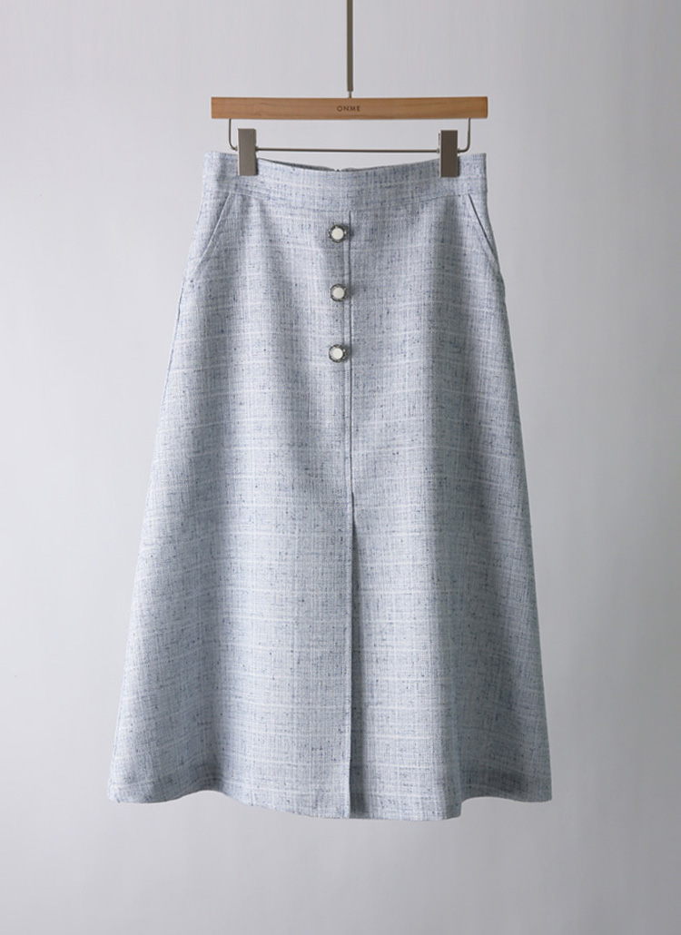 [LouisAngel] 블루 트위드 화이트 실버 버튼 슬릿 A라인 스커트