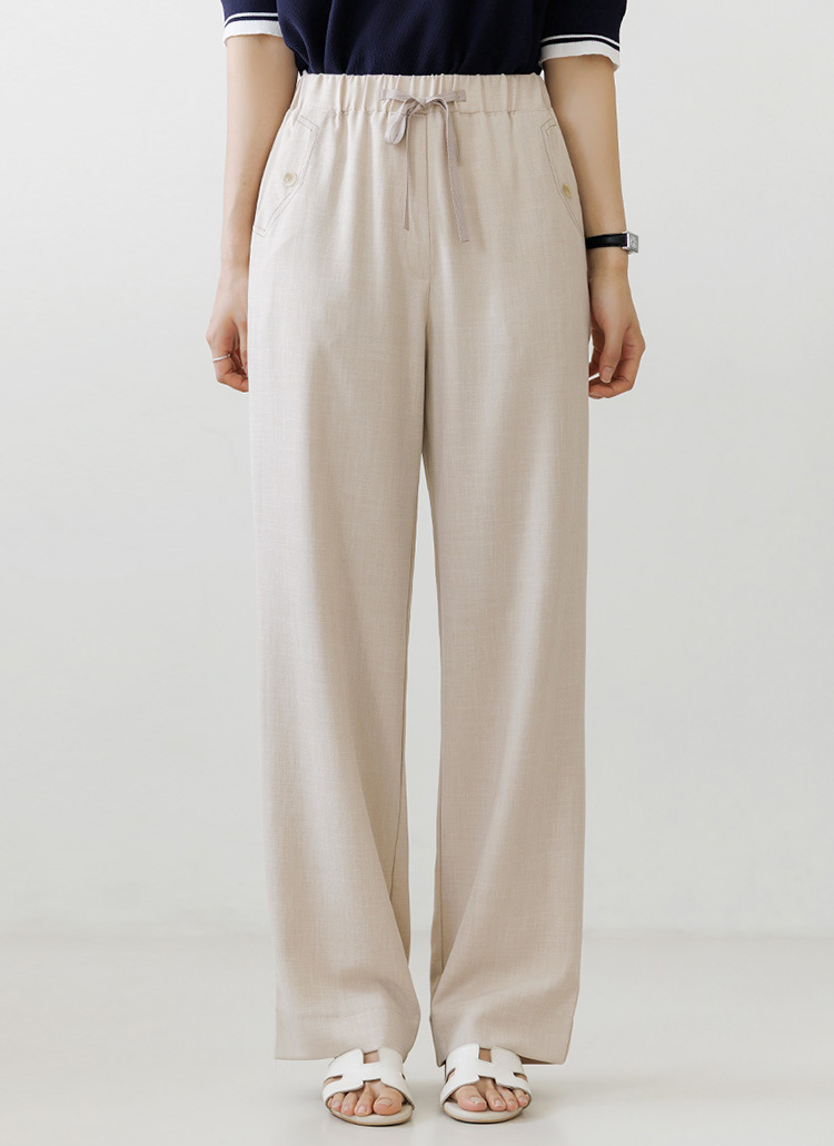 [Theonme] 내추럴 텐셀 린넨 스티치 버튼 포켓 와이드 밴딩 슬랙스 팬츠